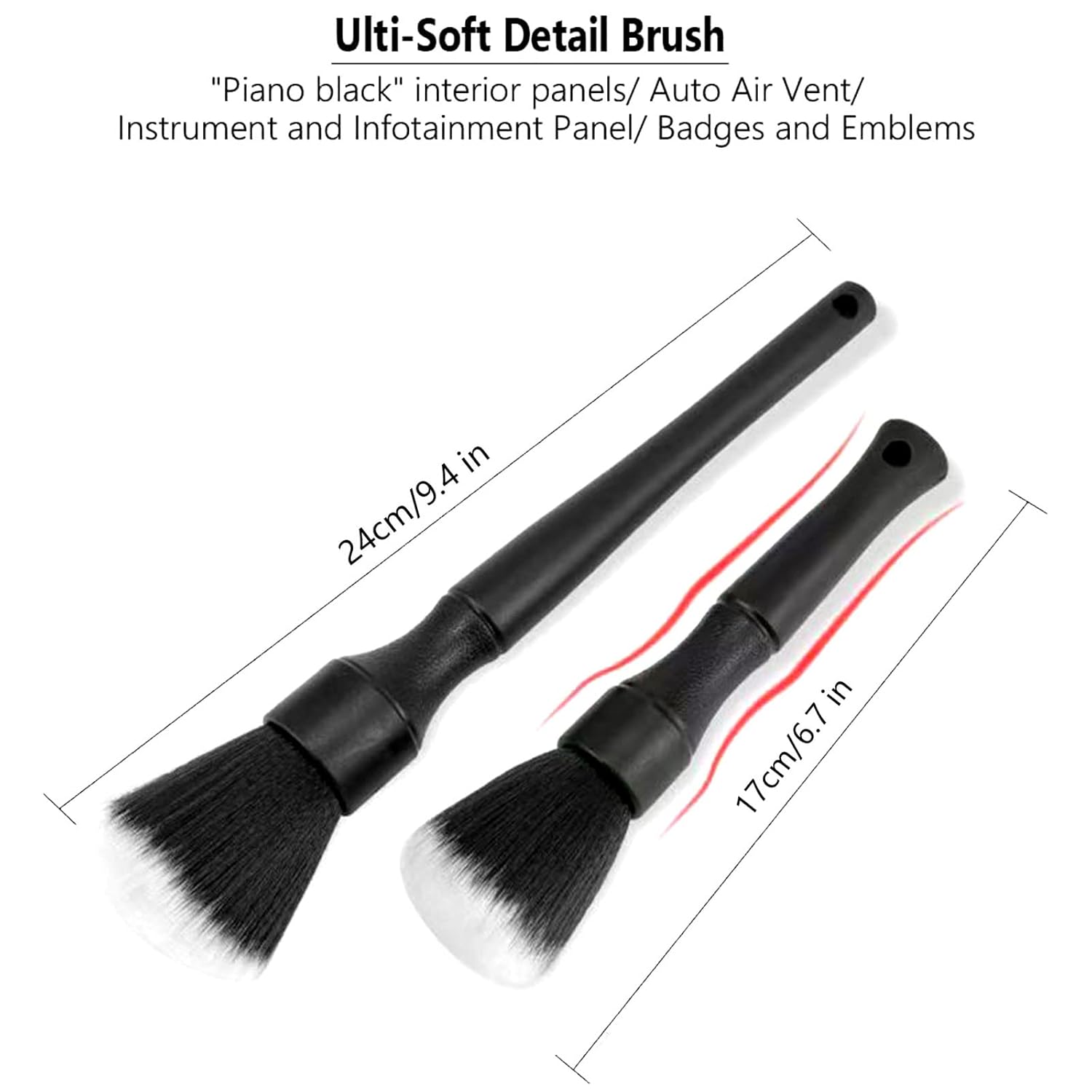 Apresentamos o Ultra-Soft Detailing Brush Set, um kit de escovas de detalhamento automotivo projetado para atender às necessidades de limpeza das superfícies mais elegantes e delicadas do seu veículo. Composto por duas escovas ultra macias, este conjunto é ideal para a limpeza de painéis, consoles centrais, telas, saídas de ar, assentos de couro genuíno e muito mais. O comprimento das escovas é perfeito para alcançar espaços estreitos, como os furos dos parafusos das rodas, garantindo uma limpeza minuciosa em cada canto do seu carro.