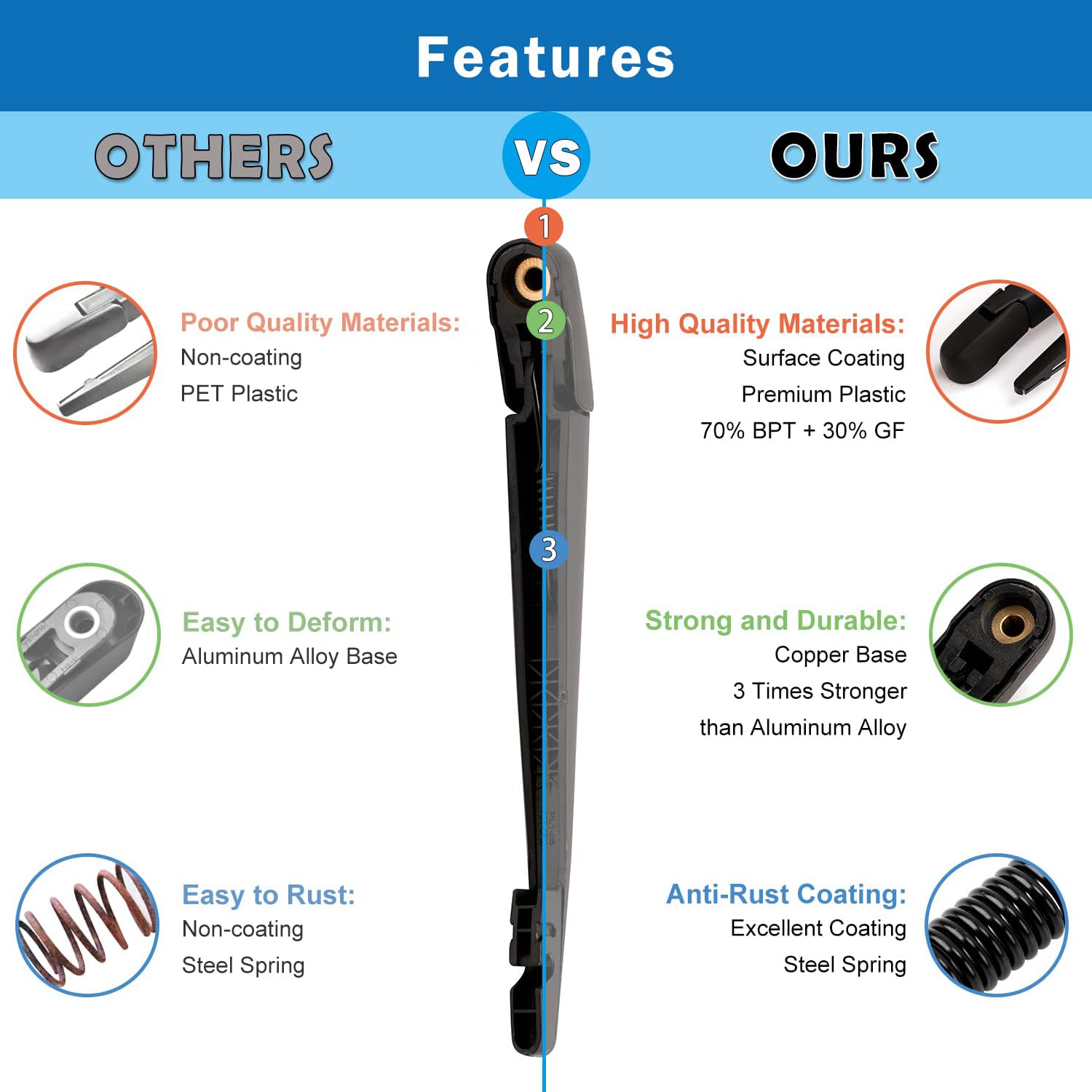Pacote Inclui: 1x Conjunto de Braço e Lâmina do Limpador Traseiro.