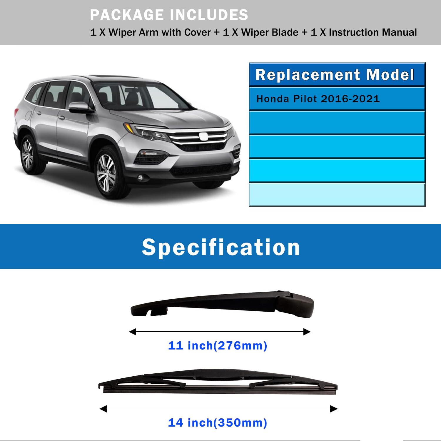 Conjunto de Braço e Lâmina do Limpador Traseiro Unifizz para Honda Pilot 2016-2022 - Peças de Substituição 76720TG7A01, 76730TZ5A01, 76622TZ5A01