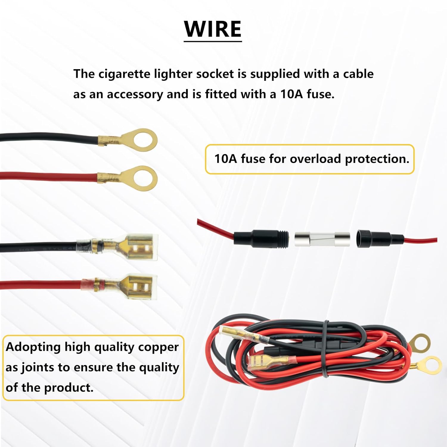 A compatibilidade é um dos grandes diferenciais deste soquete. Ele se adapta a uma ampla gama de veículos, incluindo carros, veículos off-road, vans, SUVs, motocicletas e caminhões de 24V. A instalação é simples, com a fiação que conecta o cabo vermelho ao eletrodo positivo do seu dispositivo e o cabo preto ao eletrodo negativo, ambos com fusíveis embutidos para maior segurança.