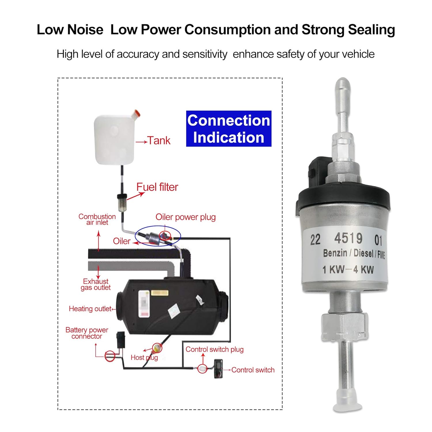 A Bomba de Medição de Combustível Universal 12V 22451901 é a solução ideal para quem busca eficiência e precisão em aquecedores a diesel. Compatível com os modelos Eberspacher Airtronic D2 e D4, esta bomba é projetada para atender a uma faixa de potência de 1KW a 4KW, garantindo um desempenho excepcional em diversas condições. Com a capacidade de substituir a peça original 22451901, esta bomba é uma escolha universal, adequada tanto para diesel quanto para gasolina.