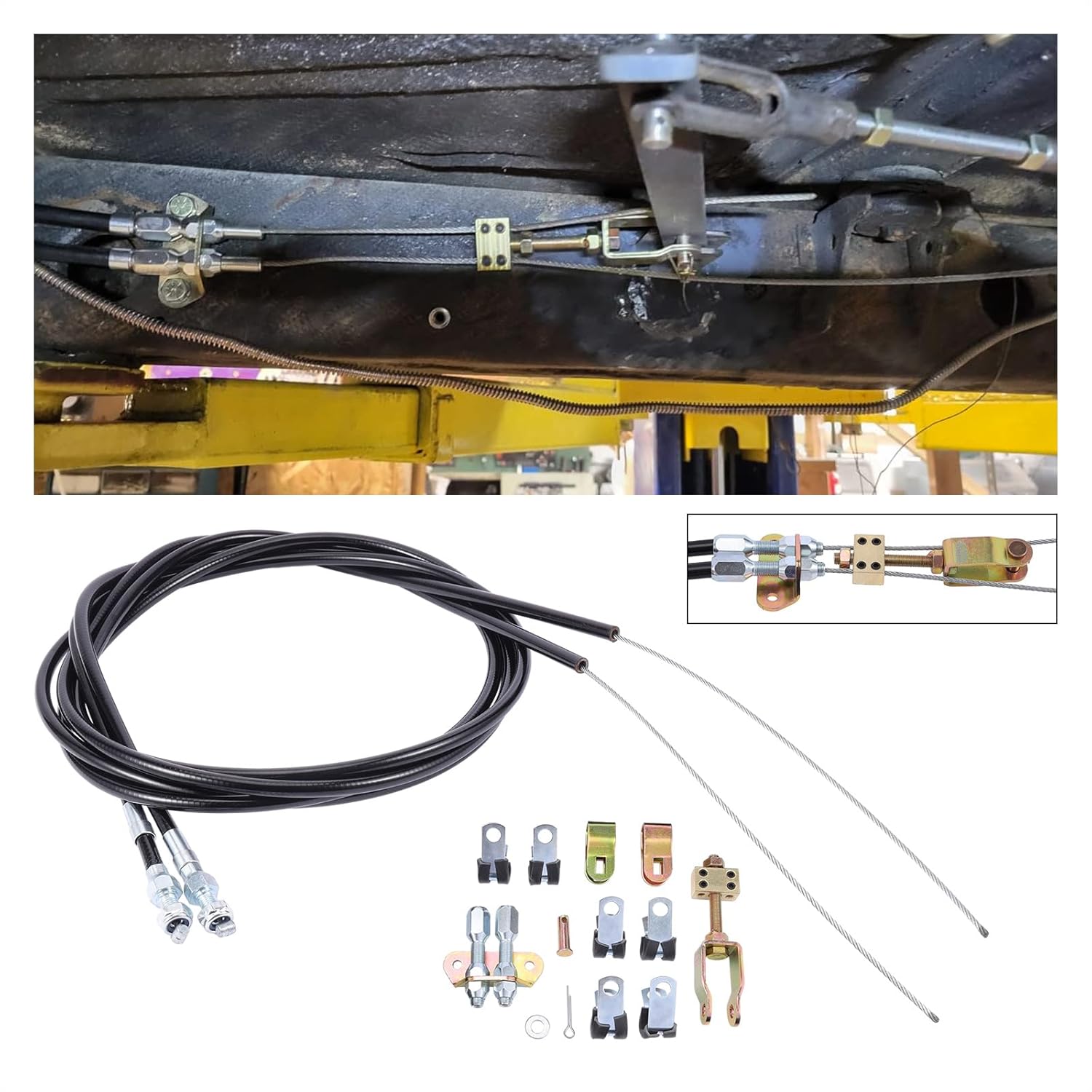 - Pacote Incluído: O Kit de Freio de Estacionamento inclui um cabo de 108″ de comprimento e uma capa de 96″, componentes de equalizador, U-clips e hardware incluído.