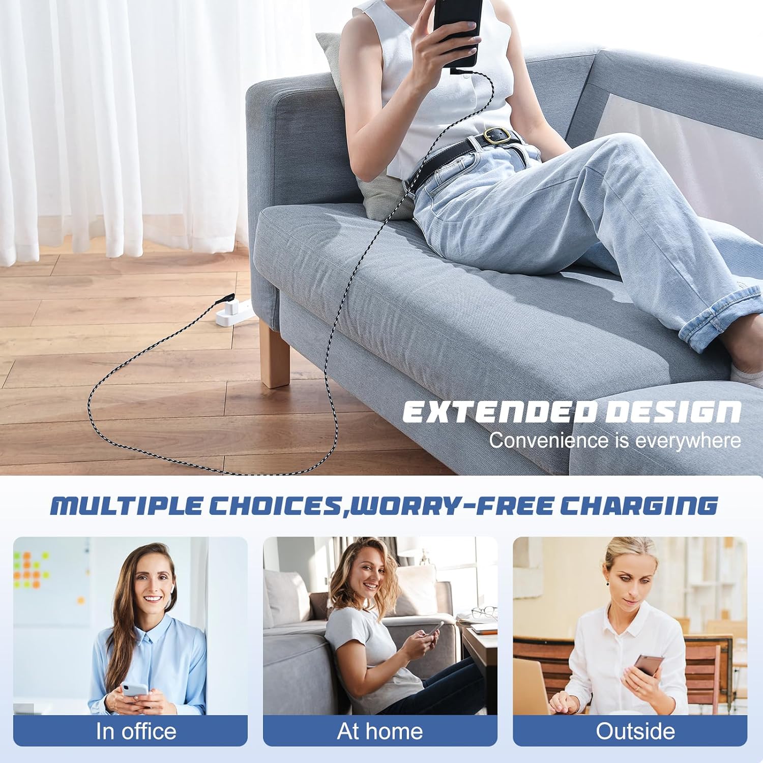 I’ve used several different right angle chargers that were very cheaply made and /or had a loose fit when connected causing unreliable charging. This charging cable is durable. I ordered the 10′ because I use my phone while it’s charging. This works perfect. The connection is snug and I have had no issues after a few weeks of using it.