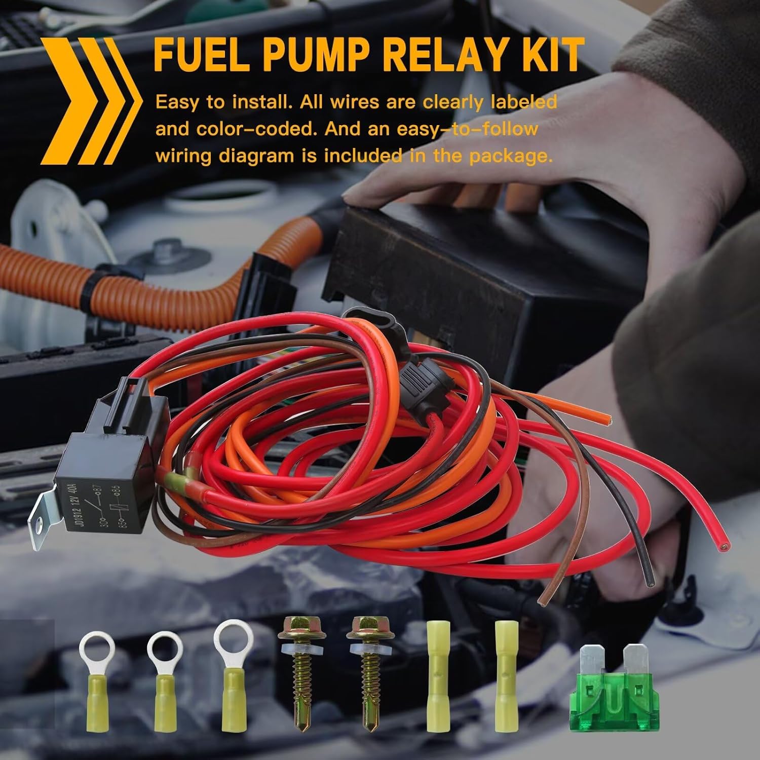 – Fios Longos e Resistentes: O kit inclui fios longos e robustos, permitindo uma conexão segura e direta da bomba à bateria. Com 10 pés de fio vermelho de 10 gauge para a bateria de +12V e 6 pés de fio laranja de 10 gauge para a bomba de combustível, você pode evitar quedas de tensão e sobrecargas que poderiam danificar o sistema elétrico do seu veículo.