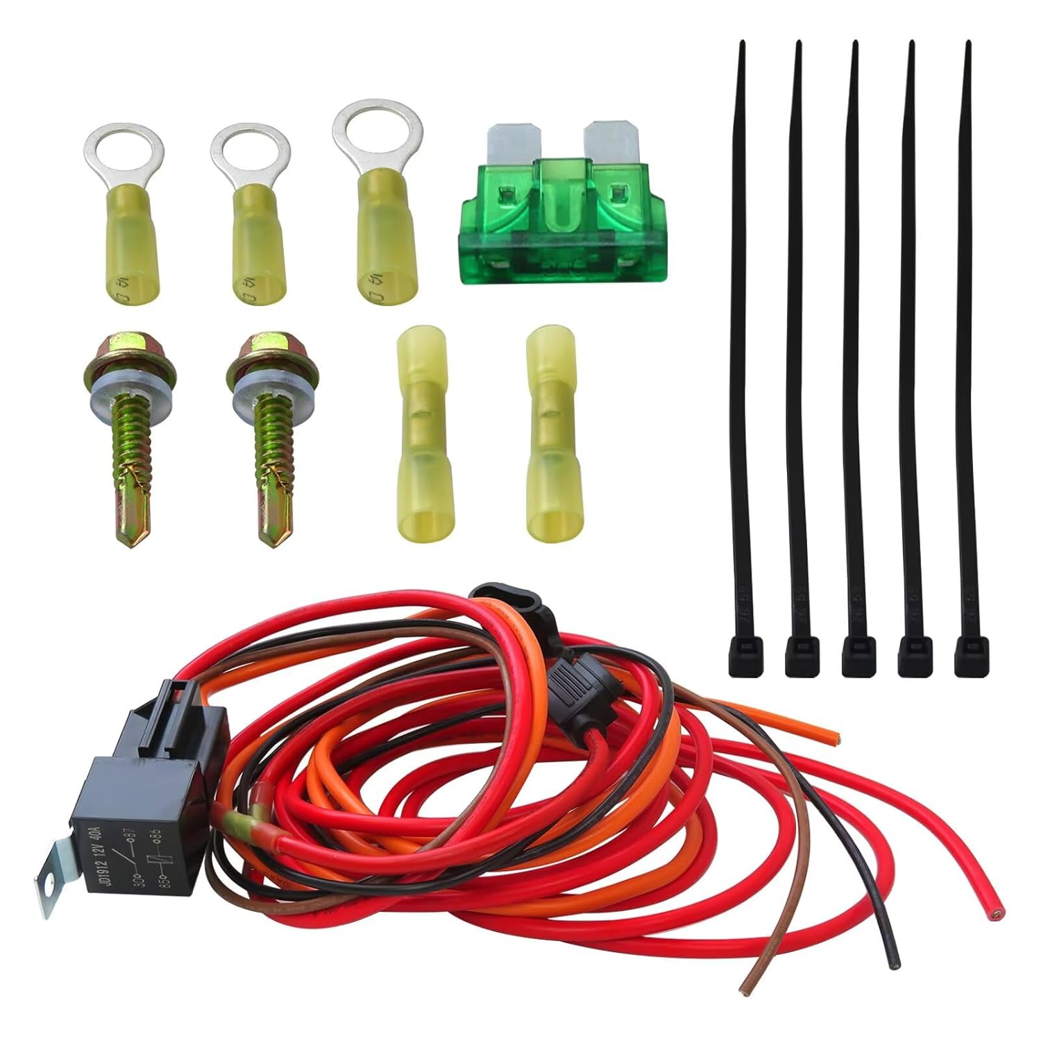 – Pacote Completo: O pacote inclui um diagrama de fiação, um relé à prova d’água de 40 Amp, uma base de relé com chicote de fios, um suporte de fusível à prova d’água, um fusível de 30 Amp, parafusos de montagem do relé, terminais de anel encolhíveis e conectores de fios encolhíveis, garantindo que você tenha tudo o que precisa para uma instalação completa.