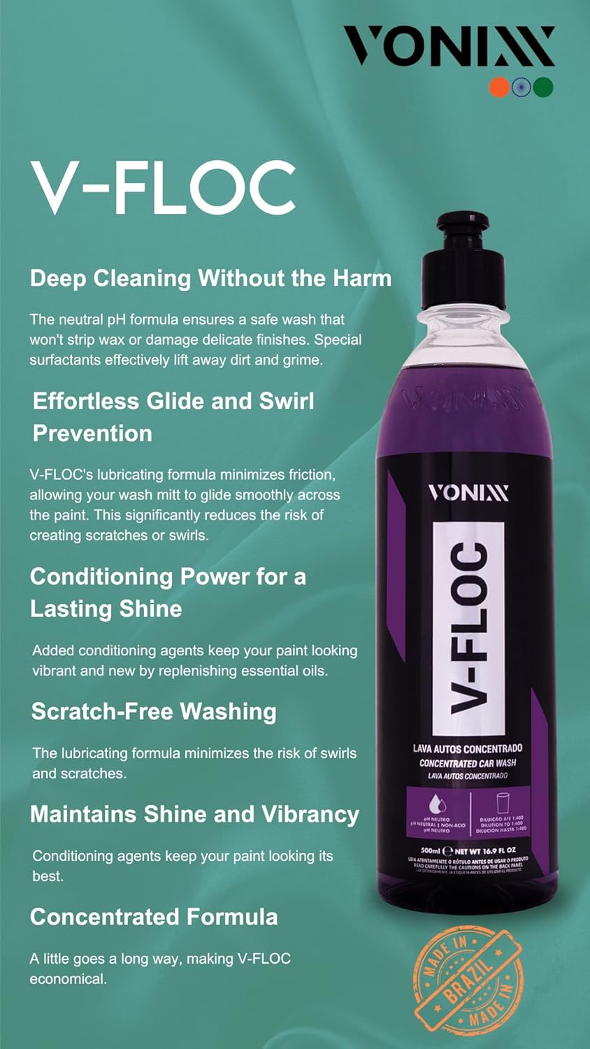Além disso, o V-Floc é seguro para uso em veículos com revestimento cerâmico, wraps e PPF (Película de Proteção de Pintura), garantindo que você possa manter a estética e a proteção do seu carro sem preocupações. Sua fórmula suave proporciona uma lavagem gentil, ideal para todos os tipos de pintura, mesmo as mais delicadas.