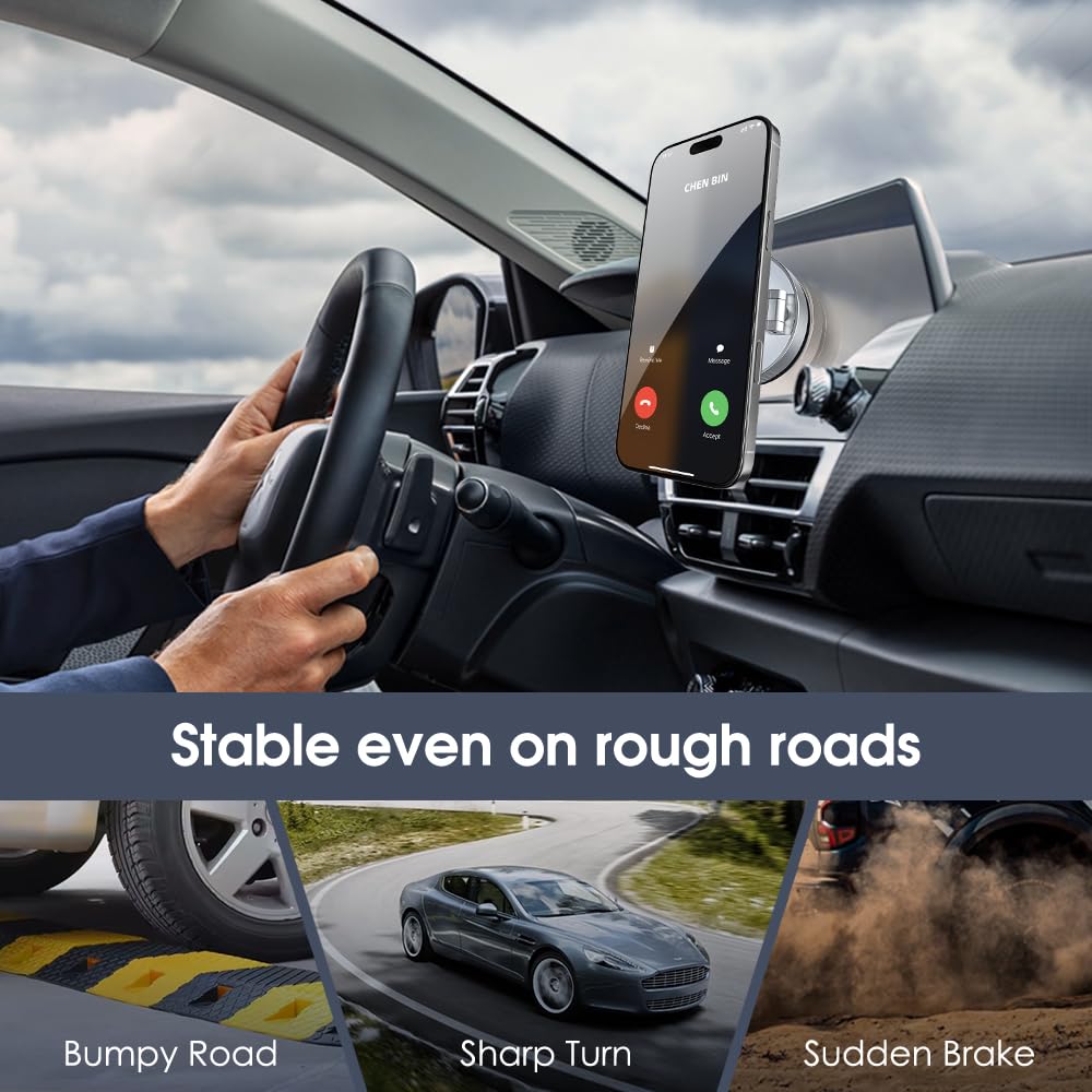 Resposta: Sim, o suporte foi testado para garantir que permaneça firme mesmo em condições de estrada difíceis, devido à sua tecnologia de sucção a vácuo e ímã potente.