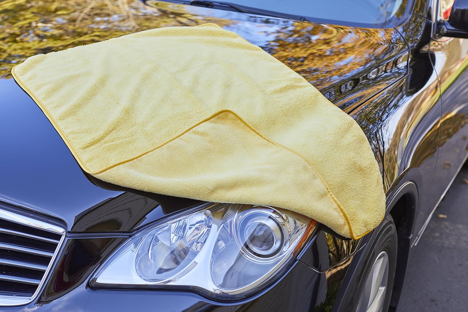 I actually bought a smaller version of this towel a couple of years ago. It worked wonders on absorbing water beyond a regular towels weight. When I found the same towel in a larger size, I didn’t hesitate to purchase it and it works just as well as the smaller version. I actually only have to ring out the towel once when I wash my car now instead of a couple of times with the smaller one. The only difference I notice between this and the smaller version is that it gets heavier as it absorbs more water which isn’t surprising considering the amount of water your carrying around in the towel. All in all, it’s a great product to use because of its absorbency and don’t forget it’s great on cars because it’s a microfiber towel too!
