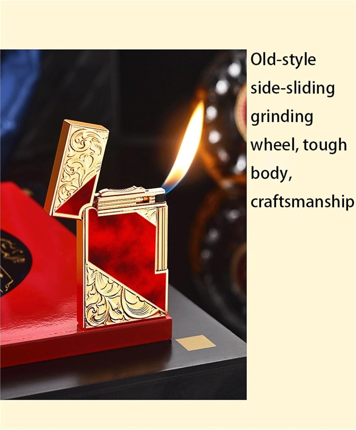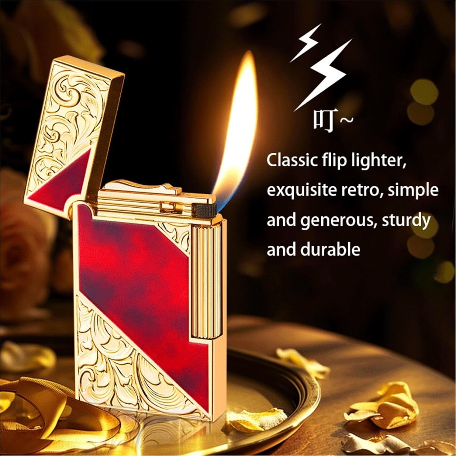 O corpo metálico do isqueiro é adornado com padrões complexos e retro, oferecendo uma textura rica e uma sensação nostálgica. Este isqueiro não é apenas uma ferramenta prática, mas uma verdadeira obra de arte portátil que eleva o seu estilo durante viagens e acampamentos. Ao abrir e fechar a tampa flip, você será recebido por um sonoro “ding”, que adiciona um toque de ritual à sua experiência de uso. Além disso, o sistema de chama à prova de vento garante que você possa acender fogo mesmo em condições adversas, tornando-o ideal para acampamentos e atividades ao ar livre.