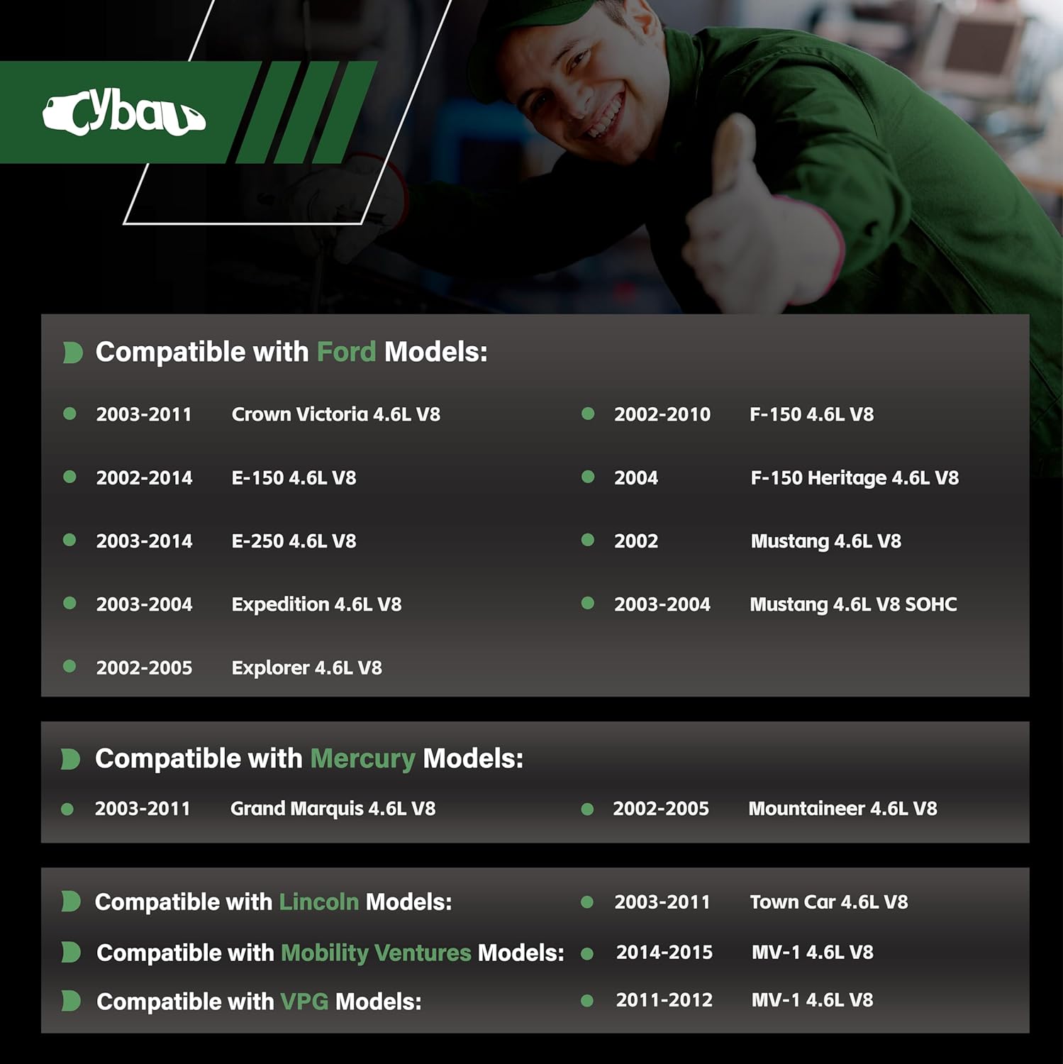 - Adequação de Veículos: FORD CROWN VICTORIA 4.6L V8 2003-2011, FORD E-150 4.6L V8 2002-2014, FORD E-250 4.6L V8 2003-2014, FORD EXPEDITION 4.6L V8 2003-2004, FORD EXPLORER 4.6L V8 2002-2005, FORD F-150 4.6L V8 2002-2010, FORD F-150 HERITAGE 4.6L V8 2004, FORD MUSTANG 4.6L V8 2002, FORD MUSTANG 4.6L V8 SOHC 2003-2004, LINCOLN TOWN CAR 4.6L V8 2003-2011, MERCURY GRAND MARQUIS 4.6L V8 2003-2011, MERCURY MOUNTAINEER 4.6L V8 2002-2005, MOBILITY VENTURES MV-1 4.6L V8 2014-2015, VPG MV-1 4.6L V8 2011-2012.
