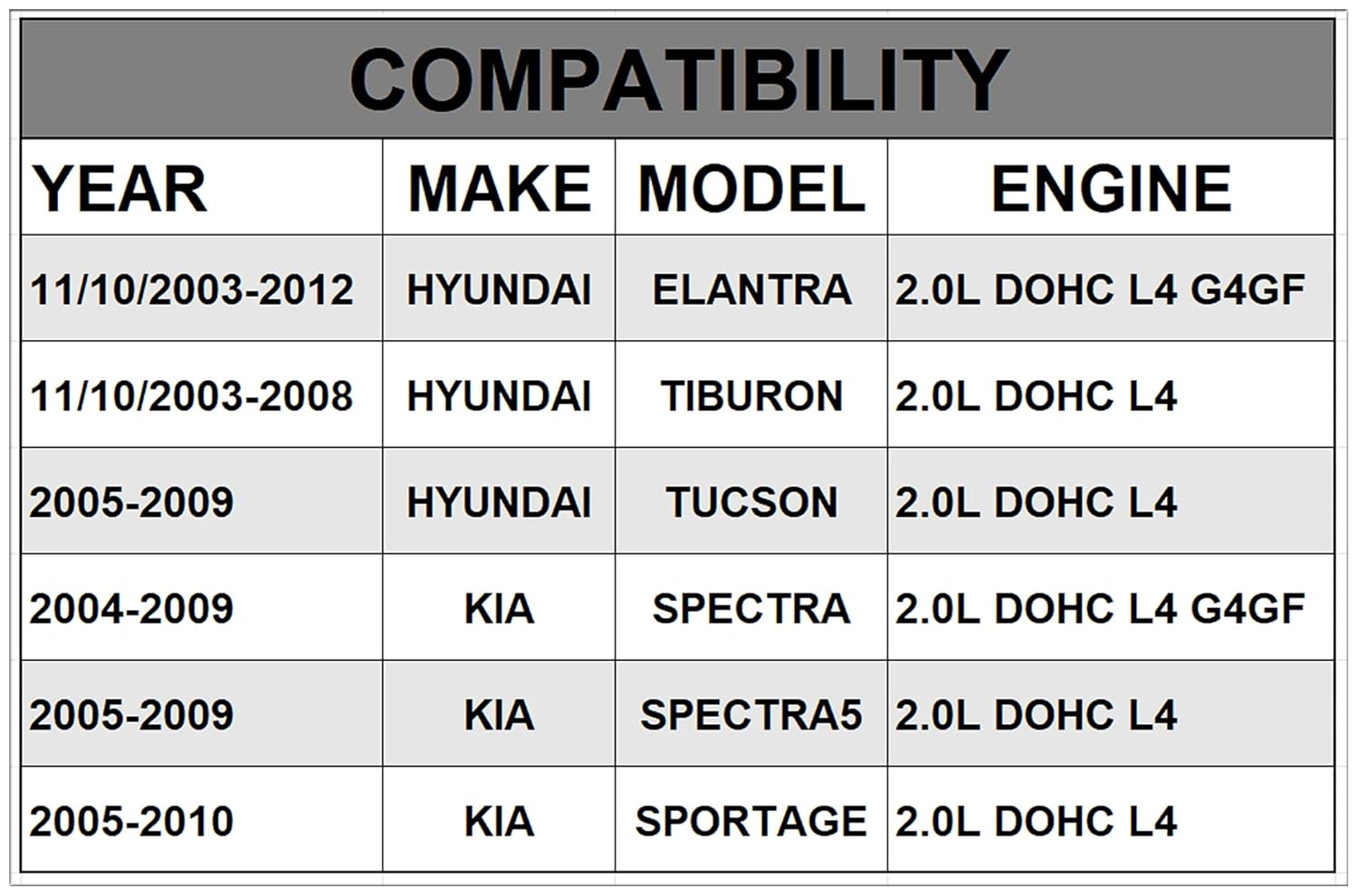 Fits perfectly for my 06 Hyundai Tucson. Good quality for the price and delivers quickly. I have had zero leaks since installing.