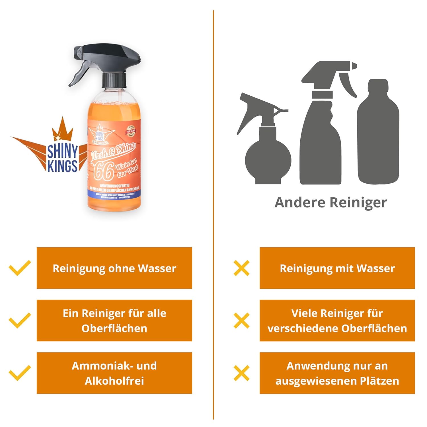 I’ve been trying several different waterless washes over the last few months years, and this one is definitely in the top 3. Its easy to apply and wipes off with ease. A lot of these washes leave a slimy residue, however this one wipes off clean and leaves a very nice shine. The lower spoiler on my car is quite a bug catcher. This wash takes the bugs off without any effort. It also cleans glass without any swirls. It was a little bit leaky during shipping, otherwise excellent!!!