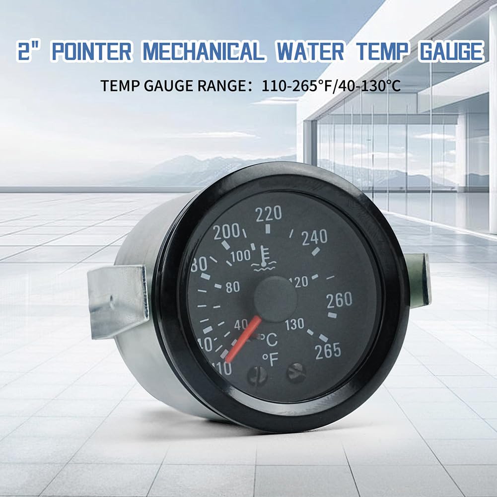 Medidor de Temperatura de Água 2″ (52 mm) para Carros 12V, ideal para monitorar a temperatura do líquido de arrefecimento. Possui ponteiro mecânico e sensor NPT 1/2, com cabo de 1,8m, adequado para carros, caminhões, veículos e embarcações. Oferece leitura precisa da temperatura do motor, ajudando a evitar superaquecimento e garantindo o desempenho ideal do veículo. Fácil instalação e durabilidade garantida, tornando-se uma escolha confiável para entusiastas de automóveis e marinheiros.