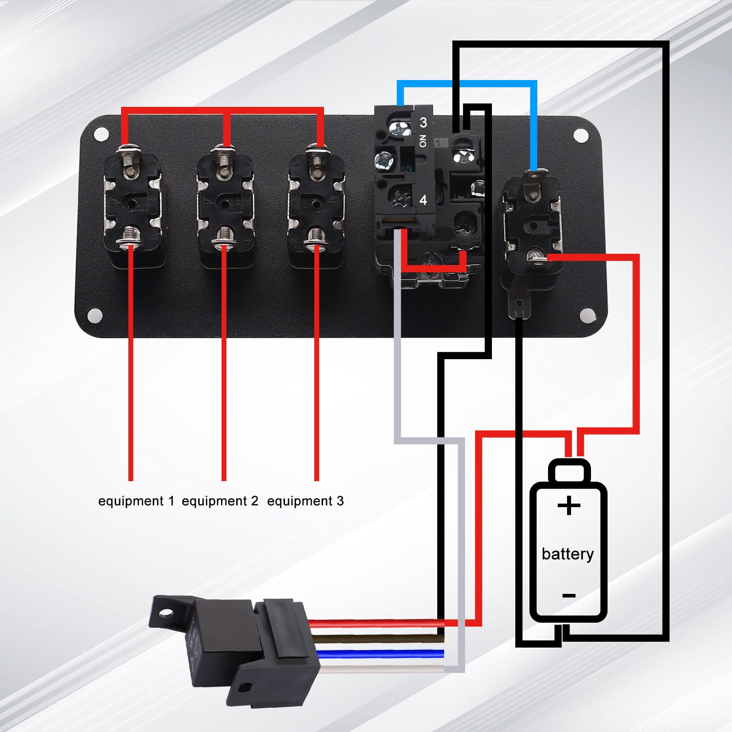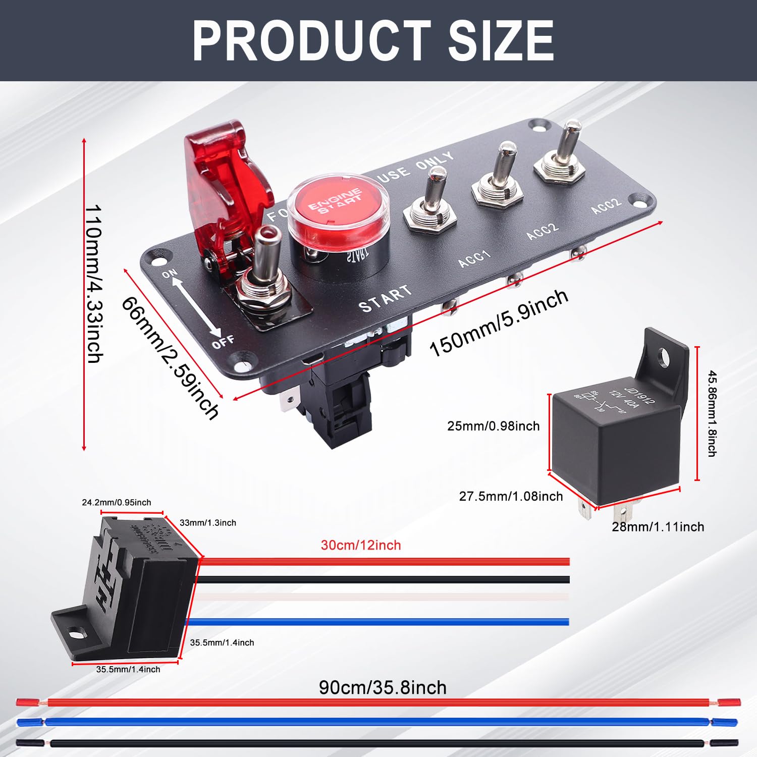 – Componentes Incluídos: Painel de montagem, 4 parafusos, interruptor LED, 3 interruptores de alternância, capacete rígido, interruptor de partida do motor, fios de conexão, relé.