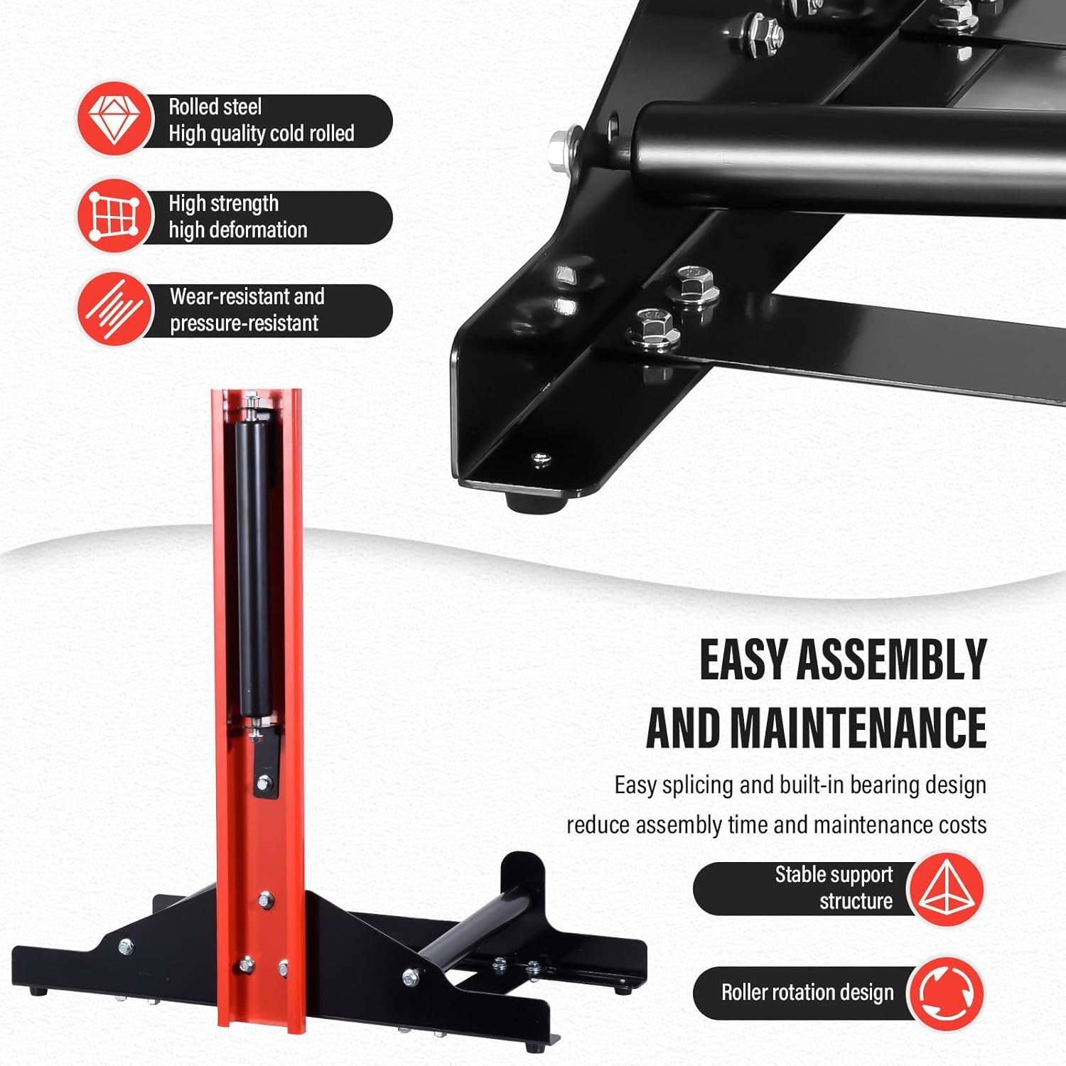 - Limpeza Promovida: Com um design de rotação em roletes que simplifica o posicionamento e o processo de limpeza dos pneus, este suporte aumenta a eficiência do trabalho e é conveniente de usar.