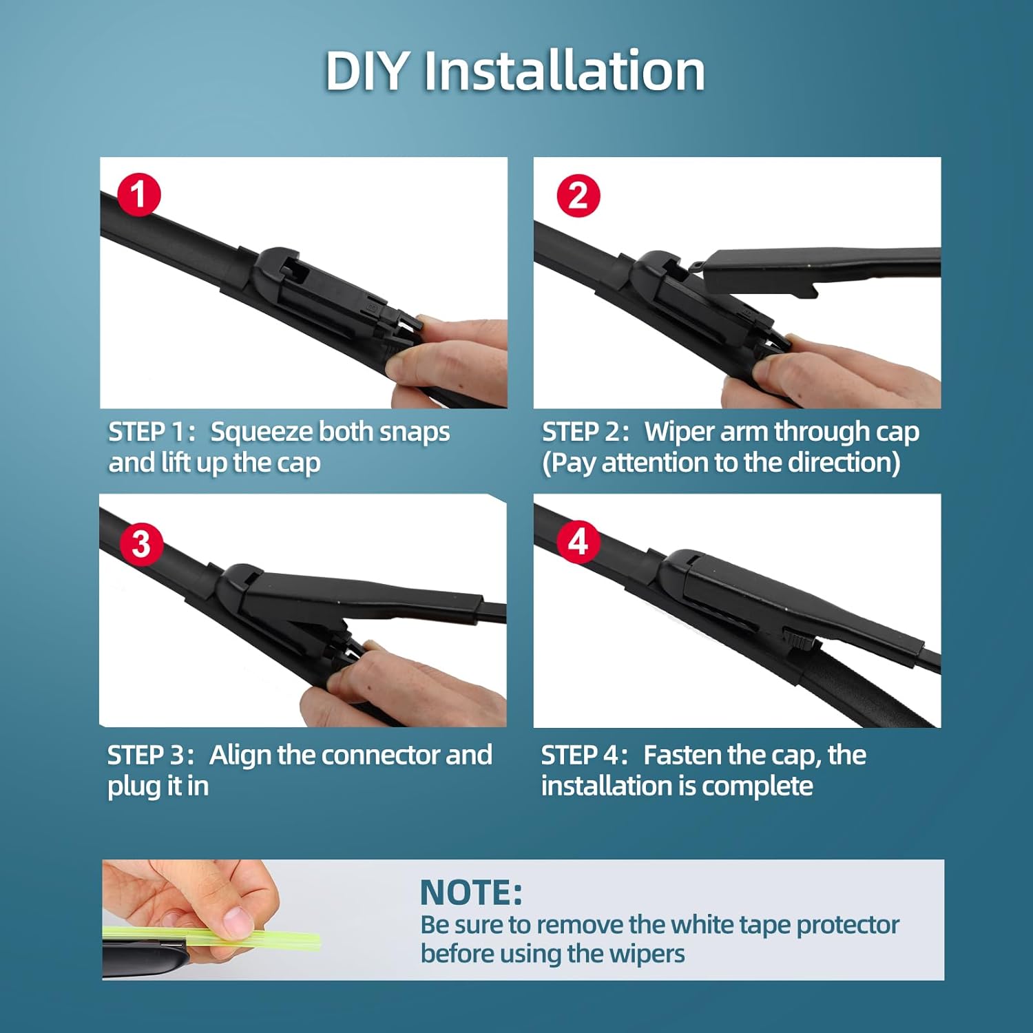 Com um design que respeita as dimensões originais do veículo e uma interface de instalação precisa, a troca das lâminas é simples e rápida, sem necessidade de ferramentas especiais. Além disso, oferecemos uma política de devolução sem perguntas em até 60 dias e um ano de garantia de qualidade, proporcionando uma experiência de compra sem preocupações.