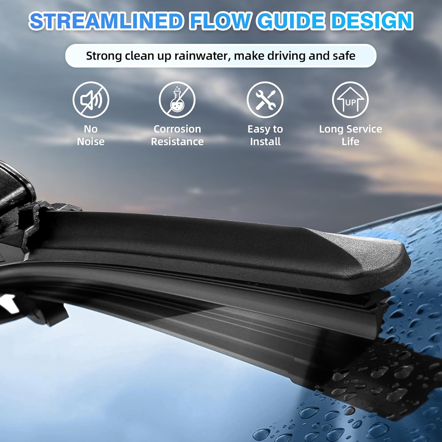 The WUYLKZT 18” Windshield Wiper set is a great automotive replacement part. It’s a pair of all-weather, silicon wiper blades. The durable blades are made well with high quality materials. They’re easy to install, quiet, and appear to be long-lasting. The universally fitting blades are flexible and wipe without streaking. In short, I like this product because it fits perfectly and works very well.