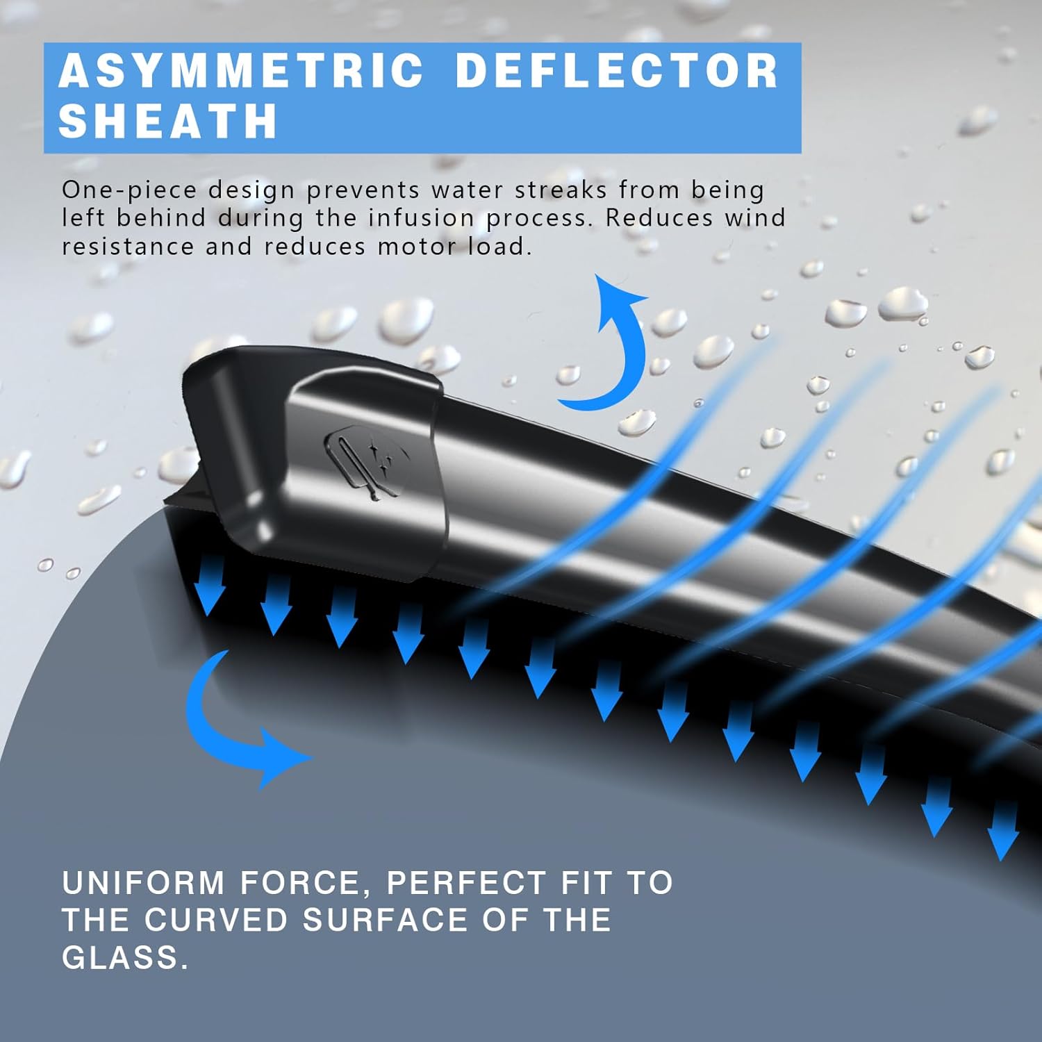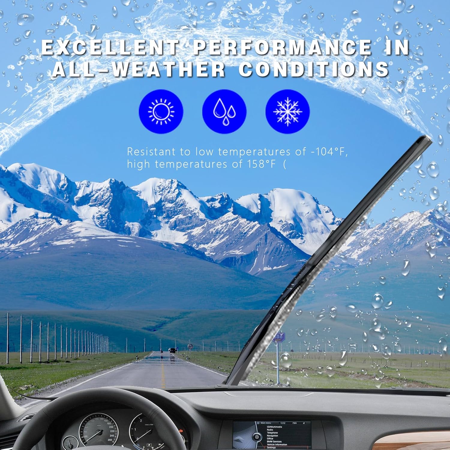 Fabricadas com borracha premium e um quadro de aço reforçado flexível, essas palhetas garantem um desempenho de limpeza superior e duradouro, mesmo em condições adversas como chuva, gelo, neve e granizo.