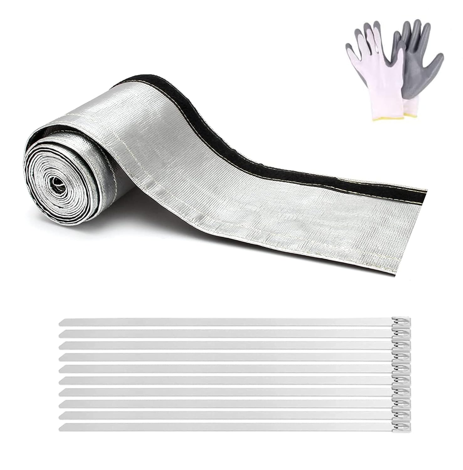 O Heat Shield Sleeve vem em um rolo de 1 metro (3,3 pés) de comprimento e 200 mm (7,8 polegadas) de largura. Inclui também 10 laços de aço inoxidável (304) com 300 mm (11,8 polegadas) de comprimento, proporcionando uma fixação segura e duradoura.