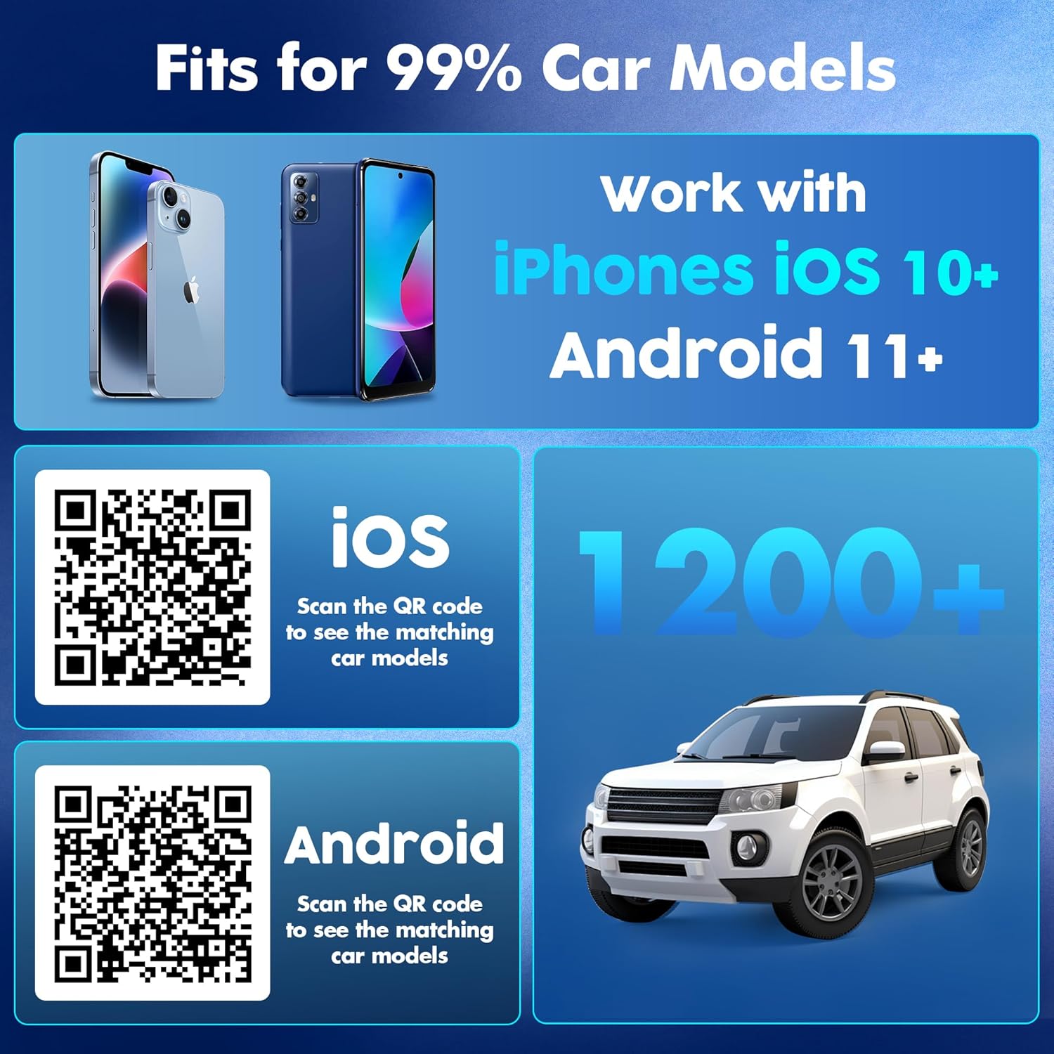 O nosso adaptador wireless CarPlay utiliza tecnologia WiFi de 2.4-5.8 GHz e Bluetooth 5.3, garantindo uma conexão rápida e sem interrupções toda vez que você liga o carro. Seu design plug-and-play elimina a necessidade de drivers ou aplicativos adicionais. Experimente o emparelhamento instantâneo e a conectividade automática tanto para Apple CarPlay quanto para Android Auto sem fio. O dispositivo é compatível com iPhones que rodam iOS 10 ou superior, assim como dispositivos Android com Android 11 ou superior.