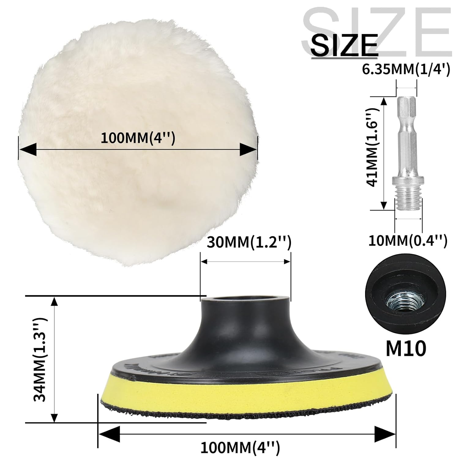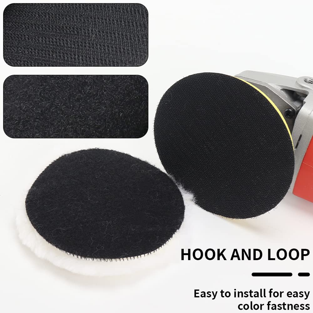 I paired this Wool Buffing Polishing Pad Set with the Turtle Wax the Restorer and had fantastic results!! See the before and after photos. It’s a great quality and easy to assemble Polishing Pad Set. The Velcro holds strong and the wool does its job. I had to use the drill on slow setting or the Turtle Wax Restorer sprayed everywhere. Wear safety glasses, gloves and work shoes/pants. The price was ideal for me too.