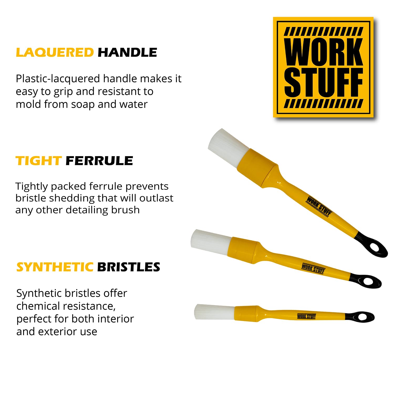 Experimente um detalhamento superior com o conjunto de escovas de detalhamento premium Work Stuff, projetado com cerdas macias sintéticas que garantem uma limpeza delicada e eficaz. Este versátil pacote de 3 escovas inclui opções adequadas tanto para superfícies externas quanto internas, assegurando um detalhamento abrangente para o seu veículo. As cerdas macias removem com segurança poeira, sujeira e detritos de superfícies delicadas sem causar arranhões ou danos, graças à sua composição cuidadosa. Alcance resultados de nível profissional com estas escovas premium, projetadas para desempenho e durabilidade ideais. Eleve sua rotina de cuidados automotivos com o Classic 3 Pack da Work Stuff, a escolha confiável para entusiastas de carros exigentes e profissionais de detalhamento.