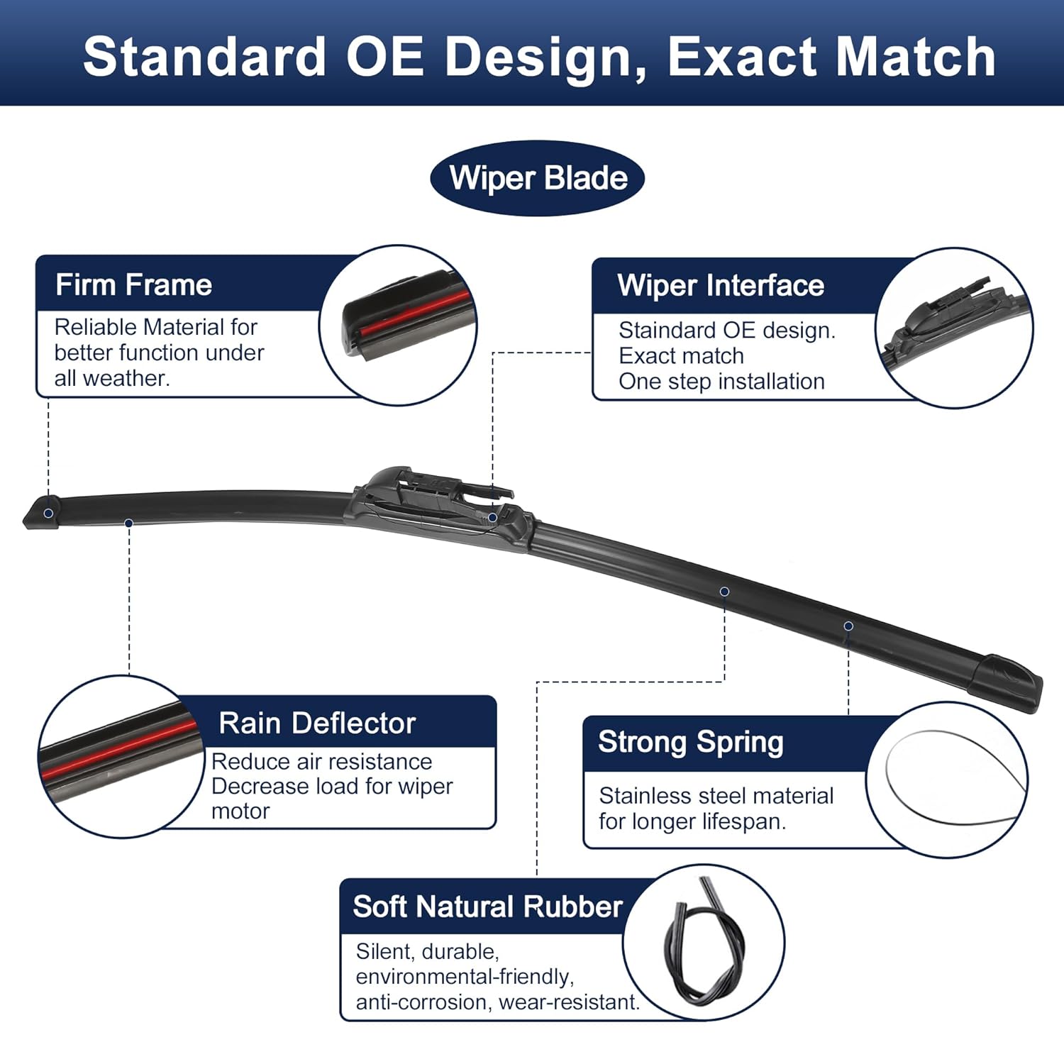 Os limpadores são fabricados com uma combinação de borracha e plástico de alta durabilidade, garantindo uma vida útil prolongada. A camada vermelha aprimorada reforça a compactação, evitando que o limpador trema durante o uso. Com resistência a altas e baixas temperaturas, além de resistência ao desgaste e fricção, esses limpadores oferecem um desempenho aerodinâmico que se mantém estável mesmo em altas velocidades.