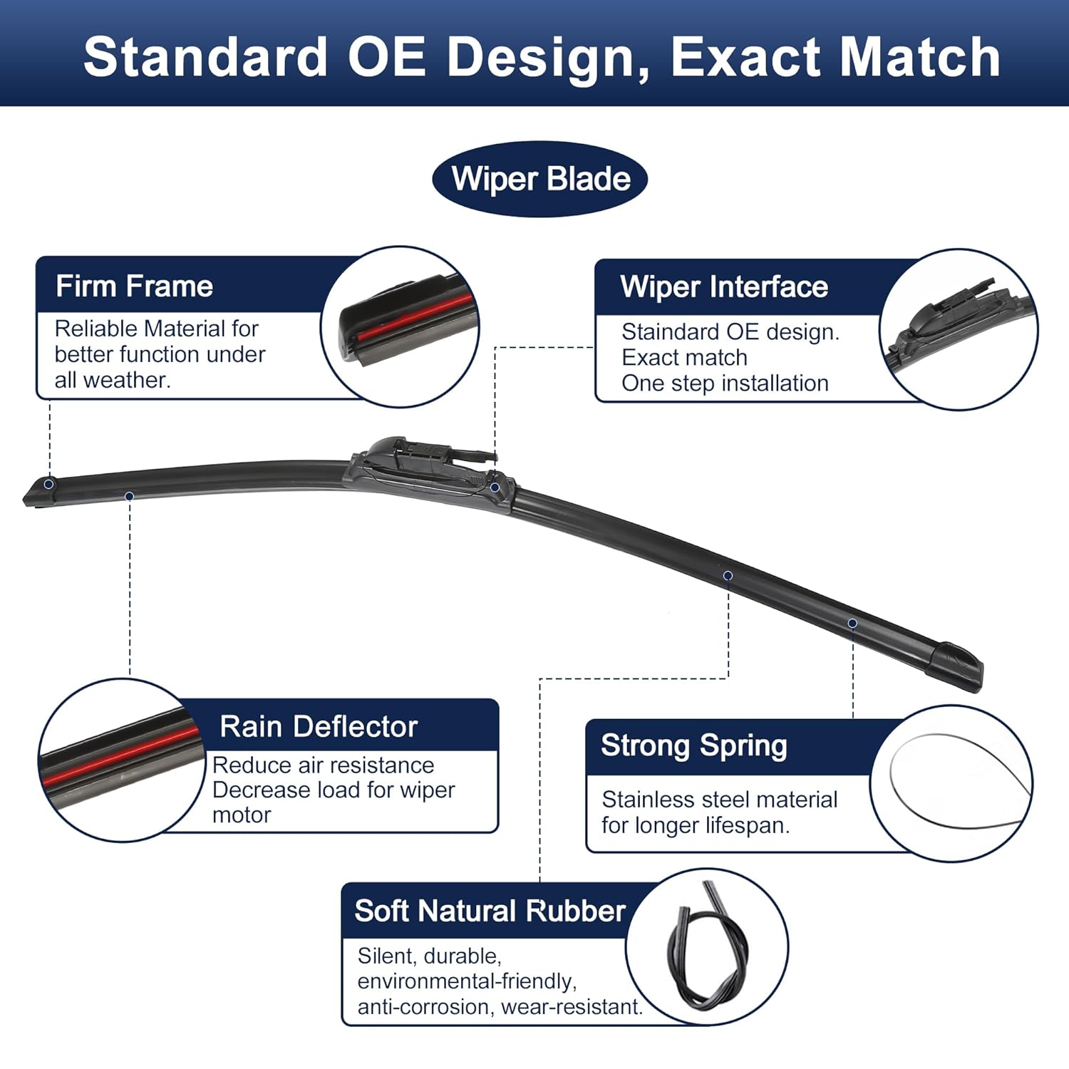Os limpadores são fabricados com materiais de alta durabilidade, incluindo borracha e plástico, que garantem uma vida útil prolongada. A camada vermelha aprimorada reforça a compactação, evitando que os limpadores tremam durante o uso. Com resistência a temperaturas extremas, rasgos e fricção, esses limpadores são ideais para todas as estações do ano. O defletor aerodinâmico permite um desempenho estável mesmo em altas velocidades, proporcionando uma experiência de condução mais segura e confortável.