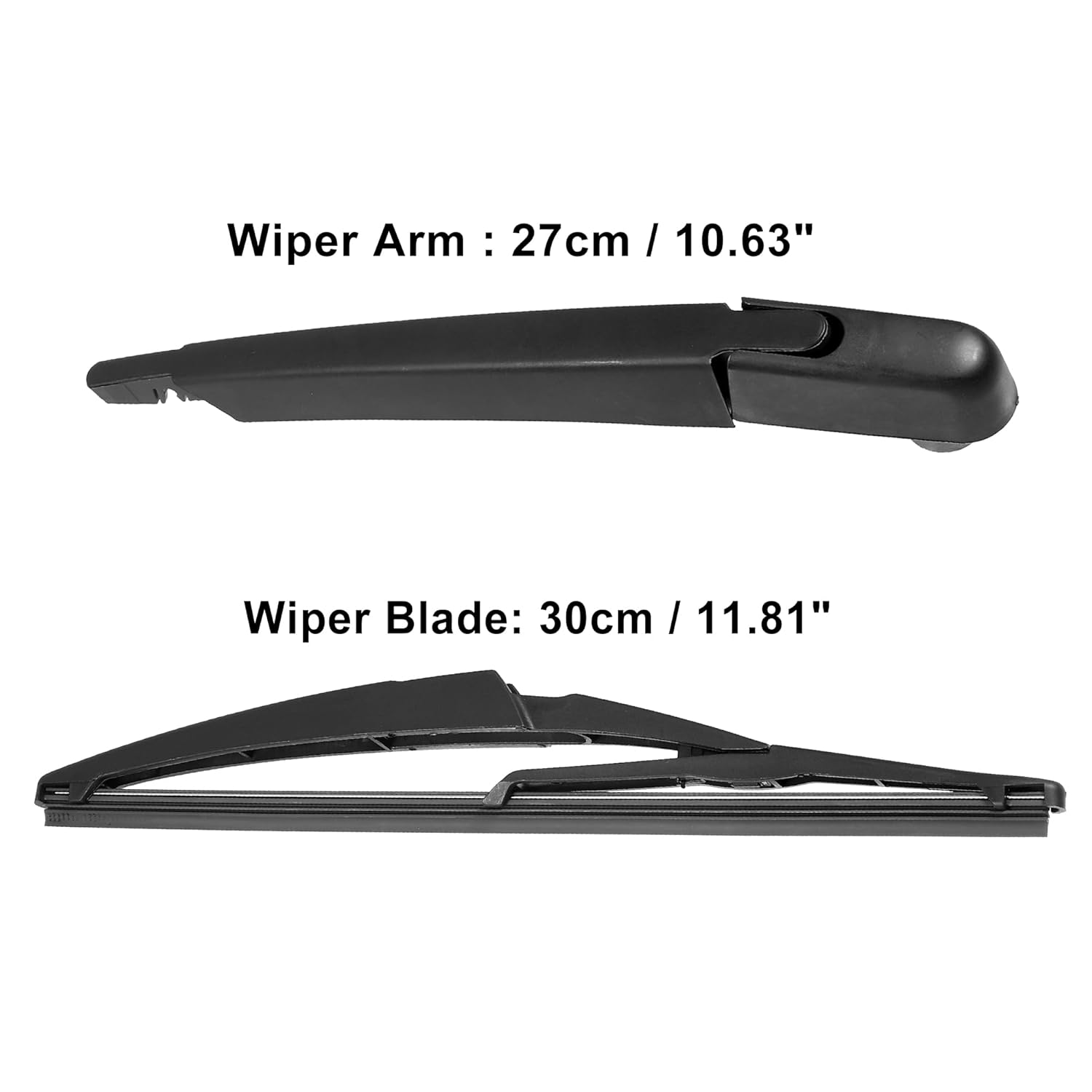 - Tamanho: A lâmina do limpador possui dimensões de 30x2x4.5cm (11.81″x0.79″x1.77″ – L*A*P), enquanto o braço do limpador mede 27x2x3.5cm (10.63″x1.38″x1.38″ – L*A*P).