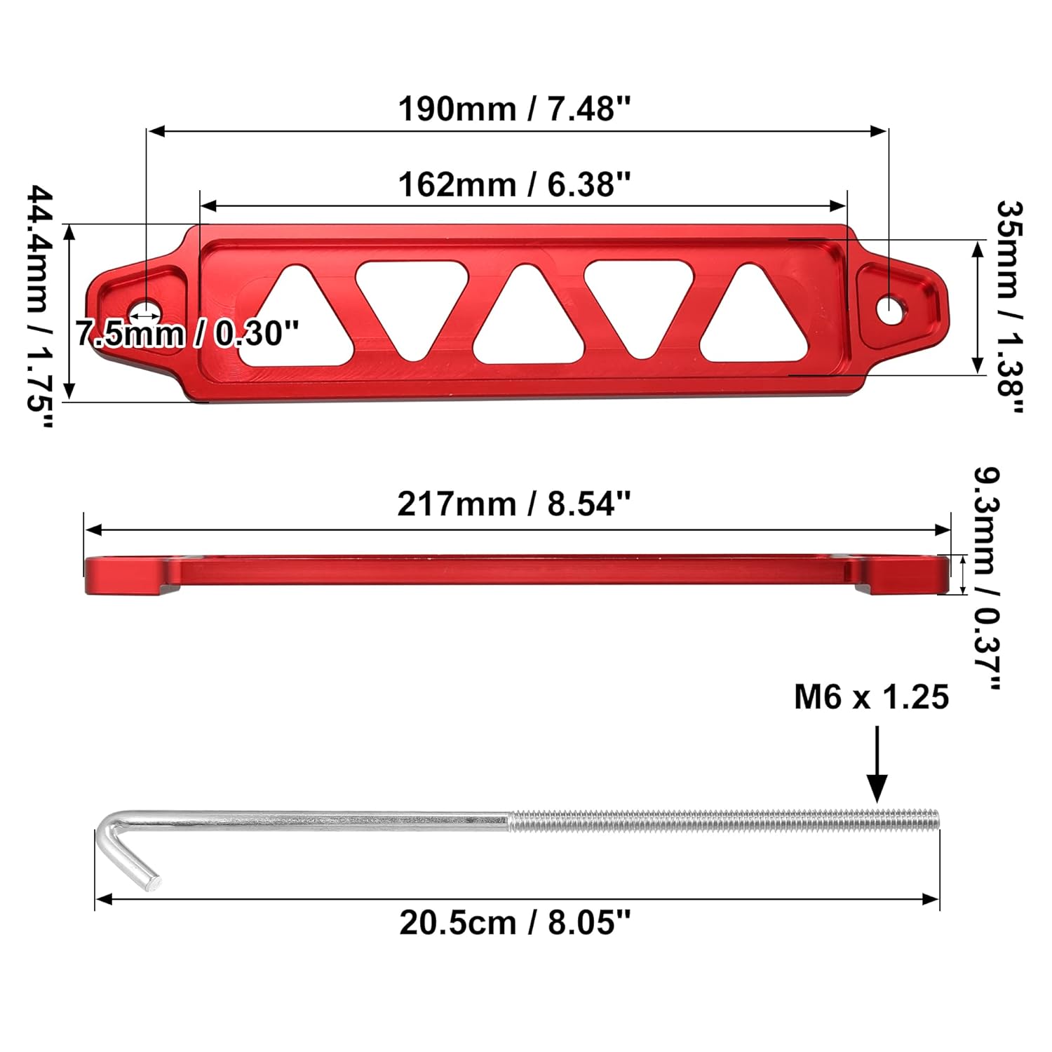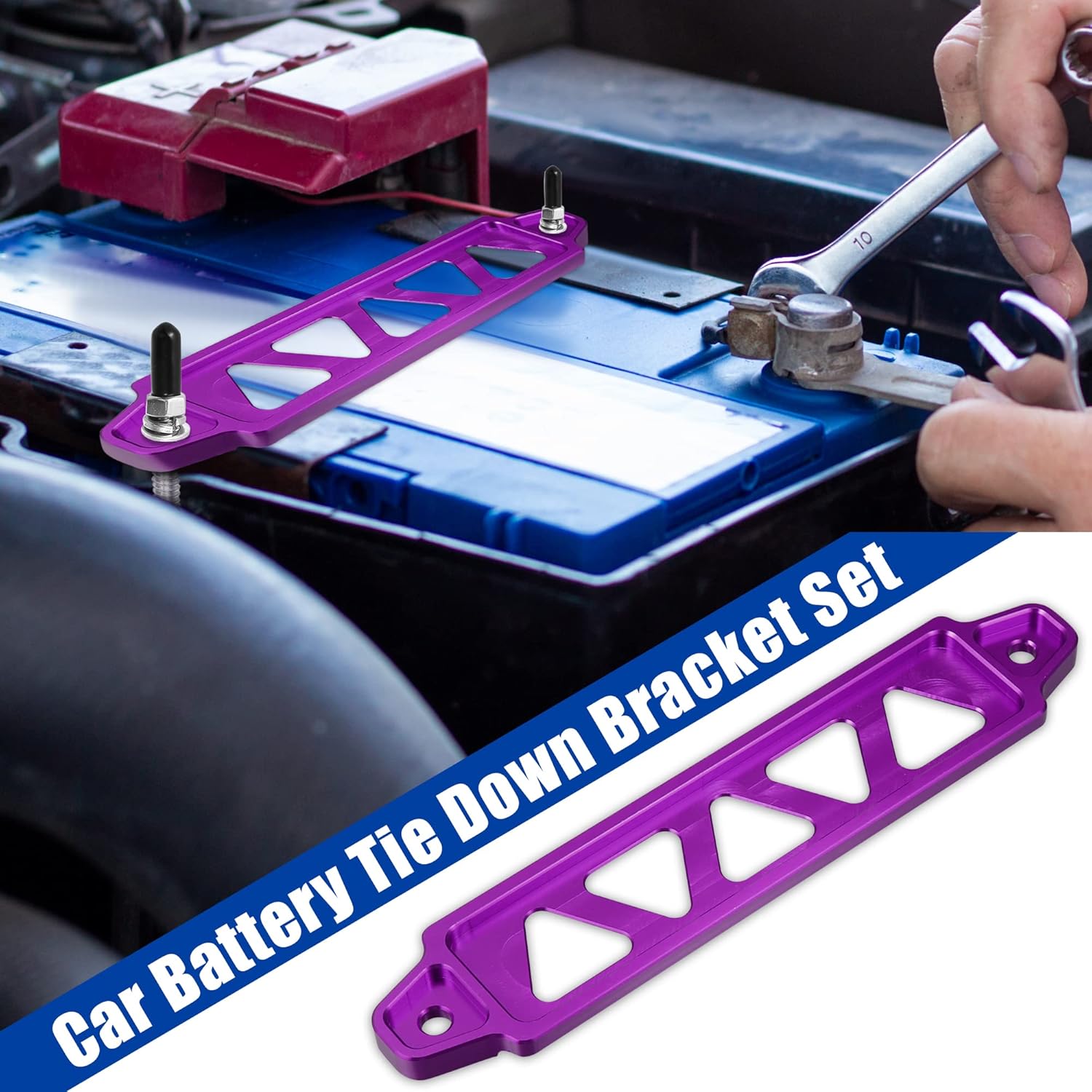 O X AUTOHAUX 220mm Universal Hollow Aluminum Alloy Car Battery Hold Down Mount Bracket Set é a solução ideal para quem busca segurança e durabilidade na fixação da bateria do carro. Com um design robusto e elegante na cor roxa, este suporte é fabricado em liga de alumínio oca, garantindo leveza e resistência à corrosão. Suas dimensões totais são de 217×44.4×9.3mm (8.54″x1.75″x0.37″), com um diâmetro de furo de montagem de 7.5mm (0.30″) e um comprimento entre centros de furo de 190mm (7.48″). O suporte inclui ganchos em forma de J com comprimento de 20.5cm (8.05″) e um tamanho de rosca de M6 x 1.25.