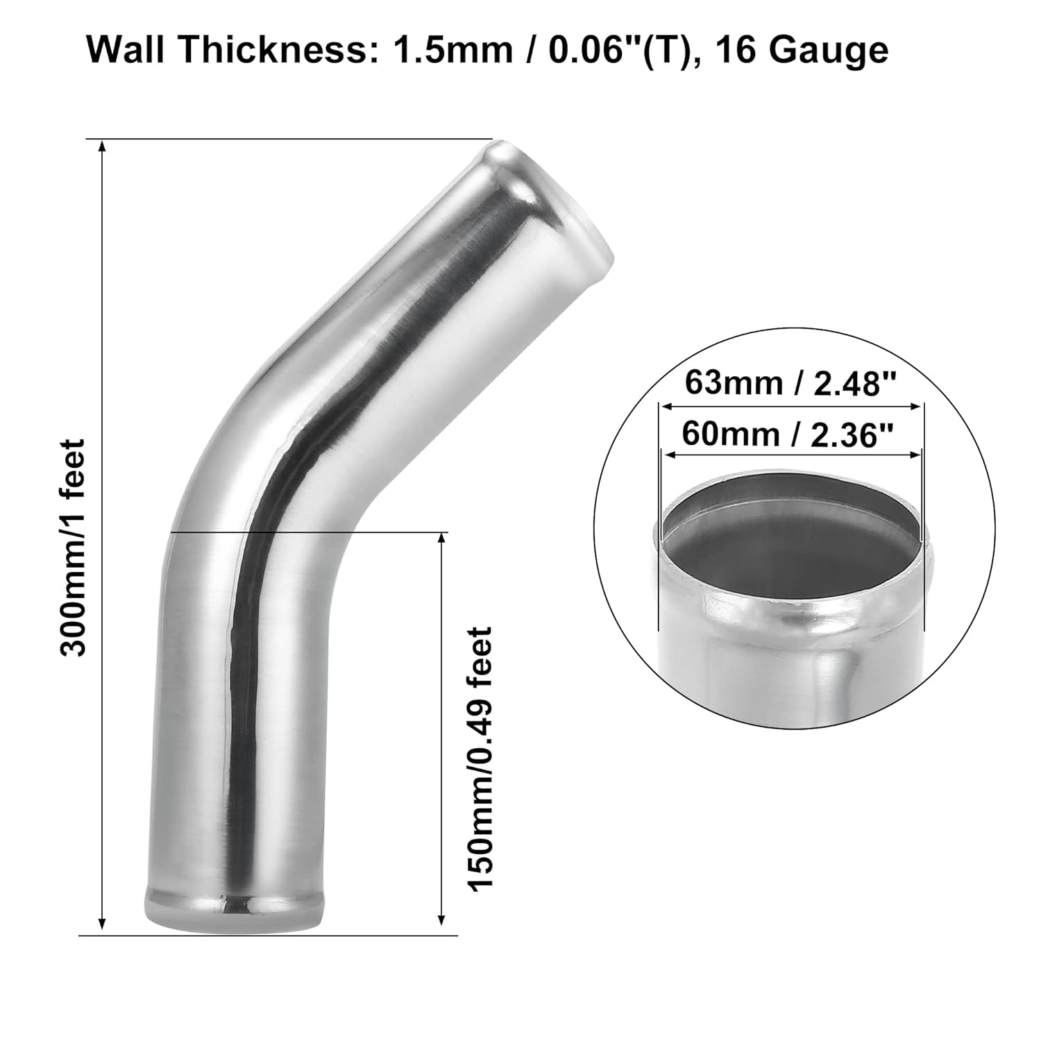 O Tubo Intercooler de Alumínio X AUTOHAUX é a escolha ideal para entusiastas de automóveis que buscam otimizar o desempenho de seus veículos. Com um design de 45 graus e um diâmetro externo de 63mm (2.48″), este tubo é projetado para atender às necessidades de sistemas de admissão de ar e resfriamento, além de configurações de tubulação de intercooler turbo. Com uma espessura de parede de 1.5mm (0.06″), este tubo de alumínio de alta qualidade é robusto e resistente, garantindo durabilidade em condições extremas.
