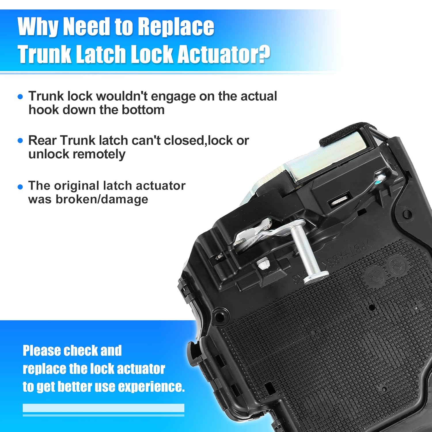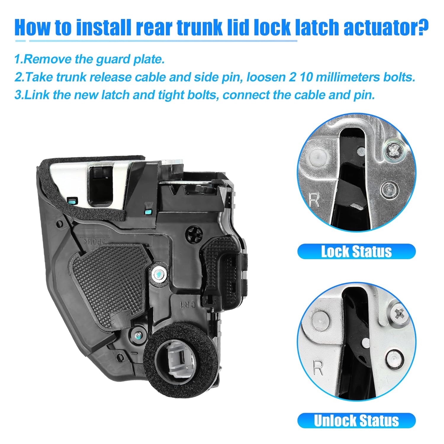 Este atuador é projetado para substituir diretamente motores de atuadores de fechadura de porta traseira quebrados ou danificados, restaurando a funcionalidade da porta traseira. Ele resolve problemas comuns como abertura remota, travamento e destravamento, garantindo que sua porta funcione de maneira suave e eficiente.