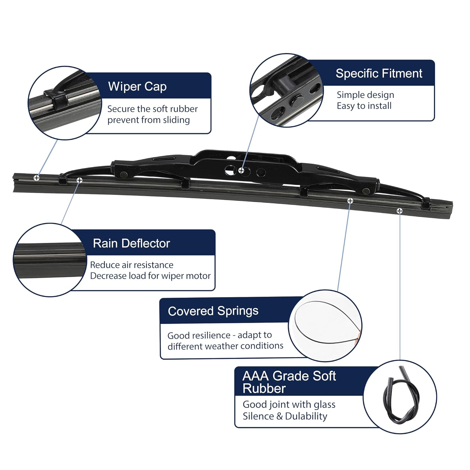 – Instalação fácil, bom encaixe, sem manchas, sem marcas d’água, limpeza eficiente, operação silenciosa, longa vida útil e ecológico. Se você possui um limpador quebrado, sujo ou barulhento, o nosso produto será a solução ideal para proporcionar uma visão mais clara e uma experiência de condução melhorada.