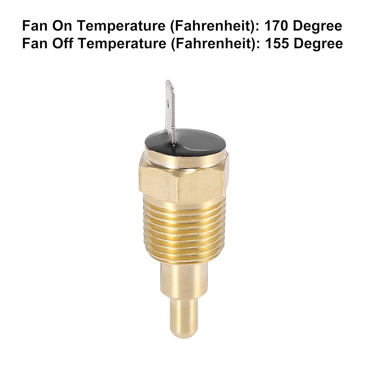 This switch is advertised as 170 Degree on 155 Degree Off. Not even close. I ordered two assuming they would be junk and bench tested both before daring to put them into my car. As expected, they are indeed junk. The first one didn’t open (turn on) until the temp hit 180. The second one opened early at 160 but neither ever closed (turned off). I gave up on them closing after the temp dropped to 120 and the switch still remained open. What that means is instead of your radiator fans turning on when the engine temp reaches 170 degrees, they will either turn on 10 degrees later or 10 degrees sooner resulting in your engine temperature being higher than you want before the fans kick in to reduce coolant temperature and once the fans kick on, they won’t turn off until you shut the engine off which will result in a significantly shorter lifespan for your fans. I doubt that many people took the time to bench test these and simply installed them assuming that they’re fine but I wasn’t about to take any chances with my car. I’m glad I took the time rather than exposing my engine to overheating issues. You have been warned. Buy this “thermo sensor” at your own risk.