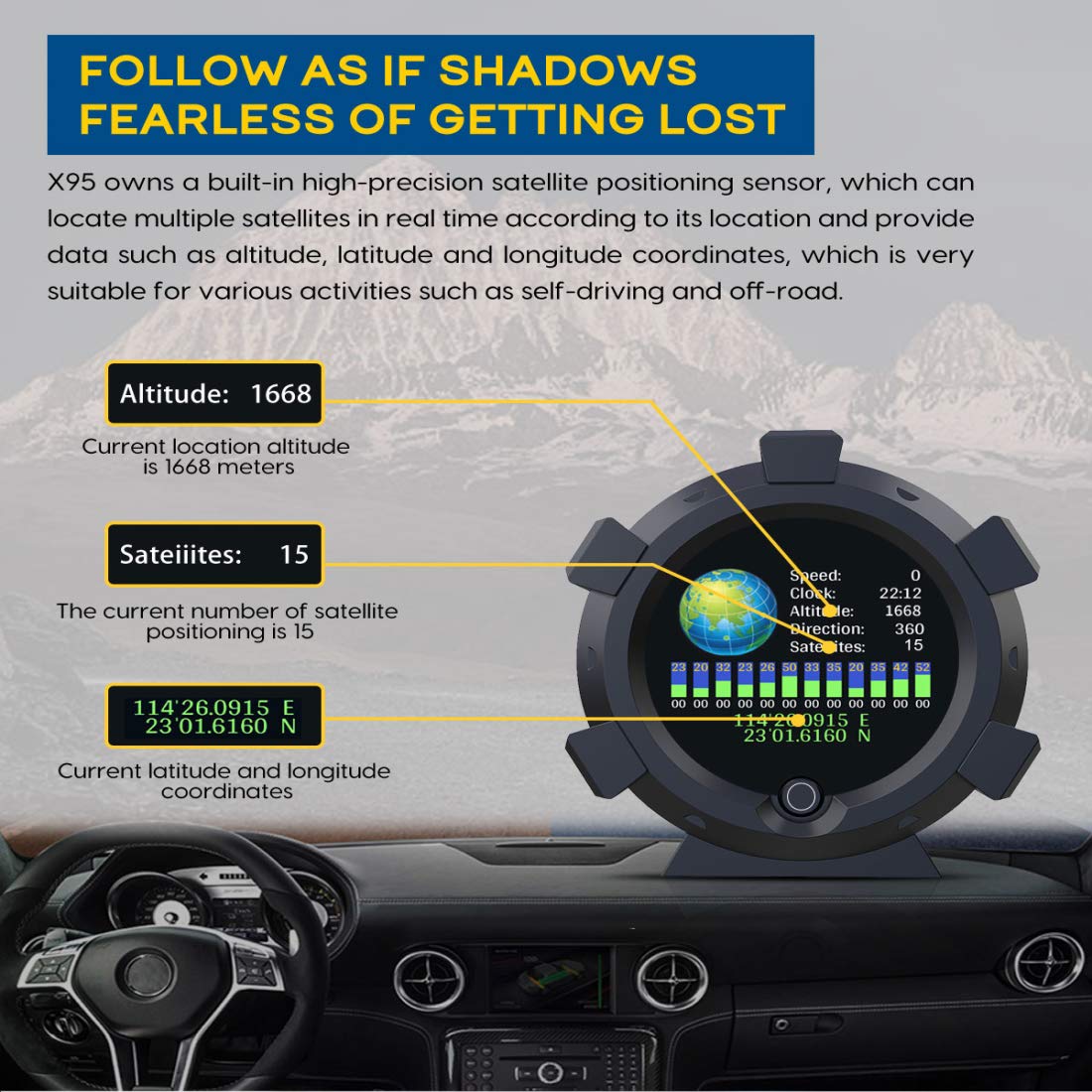 Descrição do Produto: X95 GPS Speedometer MPH Car Inclinometer Level Tilt Gauge
