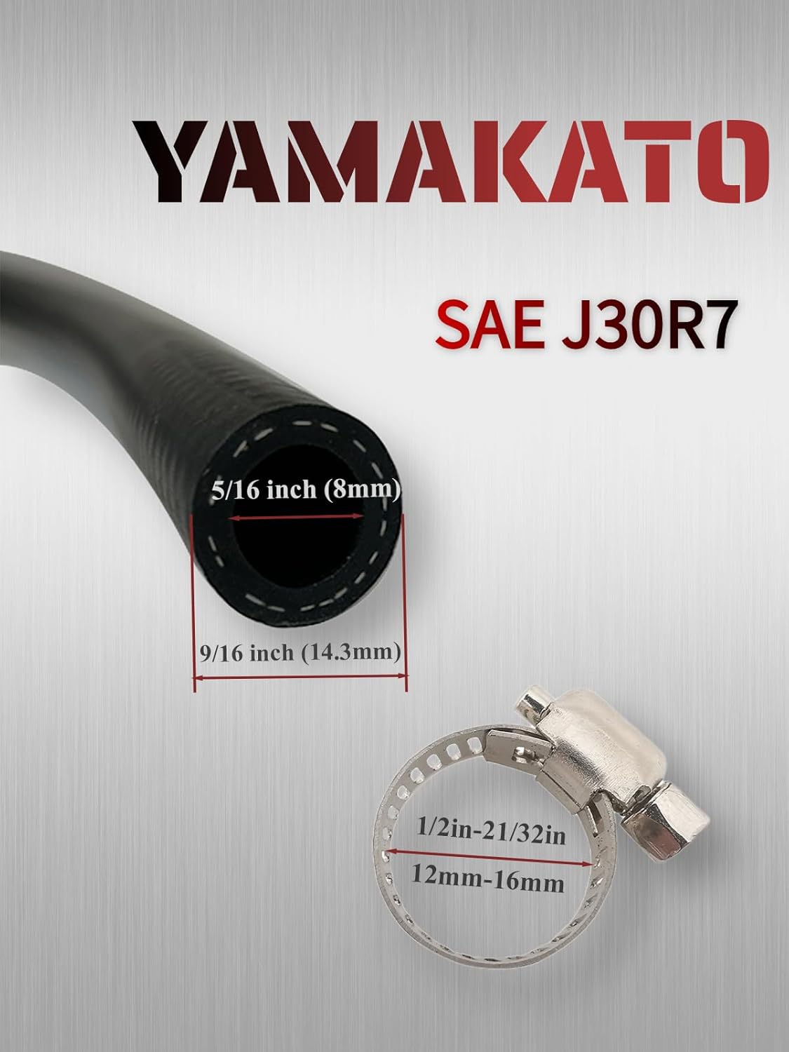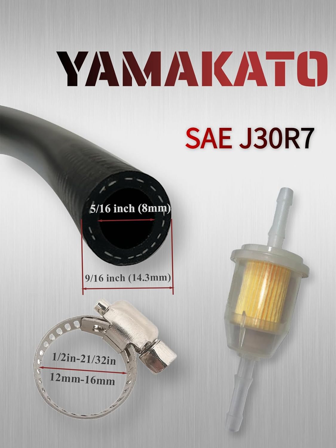 A mangueira de combustível YAMAKATO 5/16 é a solução ideal para quem busca qualidade e durabilidade em sistemas de combustível. Com especificações que atendem aos rigorosos padrões da SAE J30R7, esta mangueira possui um diâmetro interno de 5/16 polegadas (8mm) e um diâmetro externo de 9/16 polegadas (14,3mm), com um comprimento total de 9,5 pés, acompanhada de 6 braçadeiras para uma instalação segura e eficiente.