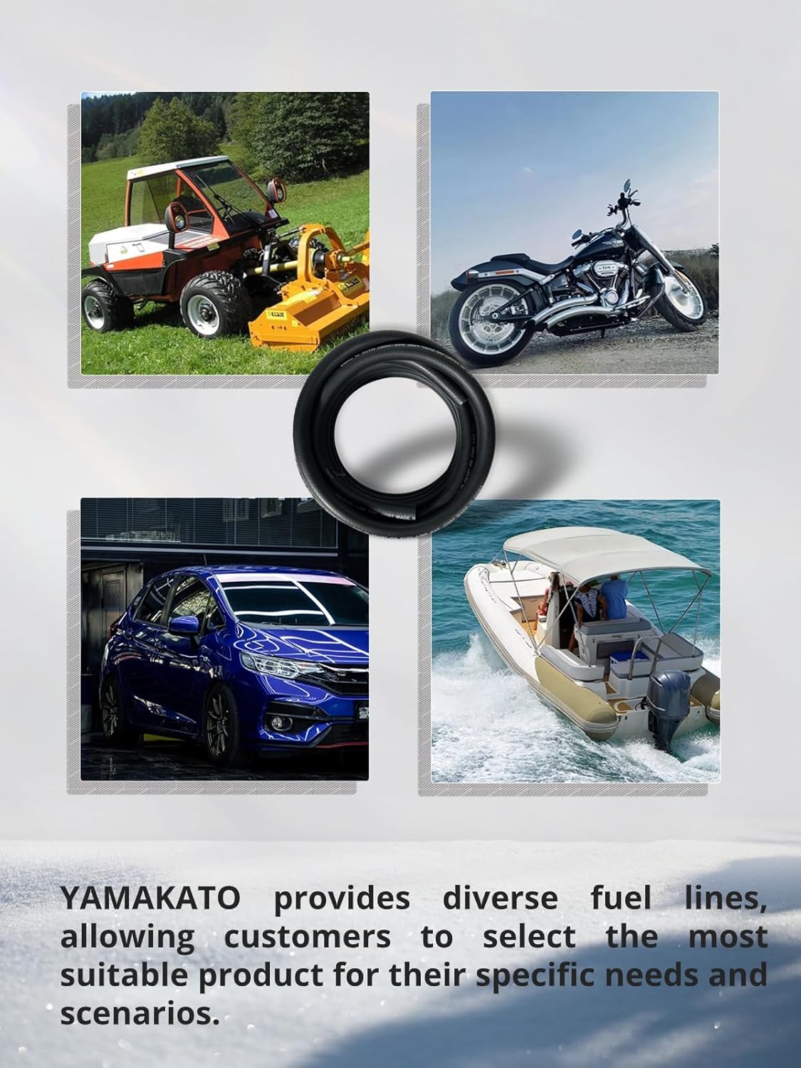 Ideal para uma ampla gama de aplicações, a YAMAKATO 5/16 é perfeita para automóveis, cortadores de grama, cultivadores, tratores, geradores, motores de popa, barcos e muitos outros motores. Sua versatilidade permite que seja utilizada como linha de combustível para carburadores, conexão PCV, linha de controle de emissões ou linha de retorno de combustível, sendo compatível com a maioria das linhas de combustível de 7mm a 9mm. É uma escolha confiável para marcas renomadas como Honda, Ford, Toyota, GMC, Nissan, Mazda, Subaru, Mercury e Yamaha, além de ser adequada para controle de emissão de vapor e controle de vácuo de fumaça.