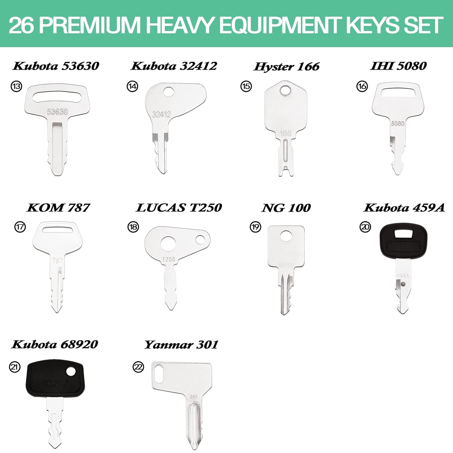 – Quantidade: 26 chaves específicas para modelos de equipamentos pesados.
