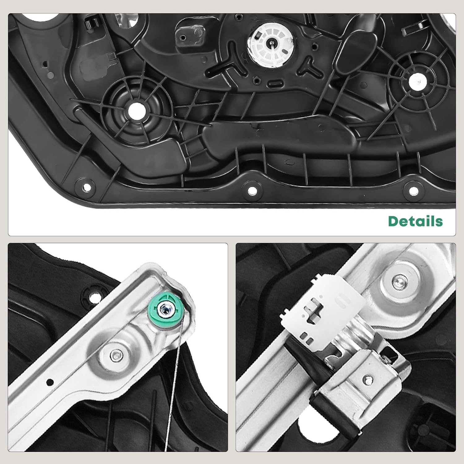 - Operação Estável: Através de até 30.000 testes, garantimos que o relé do regulador de janela, cabos, clipes e polias são duráveis e atendem aos padrões. Os kits de hardware do regulador de janela são projetados para suportar temperaturas de -10 °F a 150 °F. Mesmo em condições climáticas adversas, a janela opera suavemente nas guias de rolete.