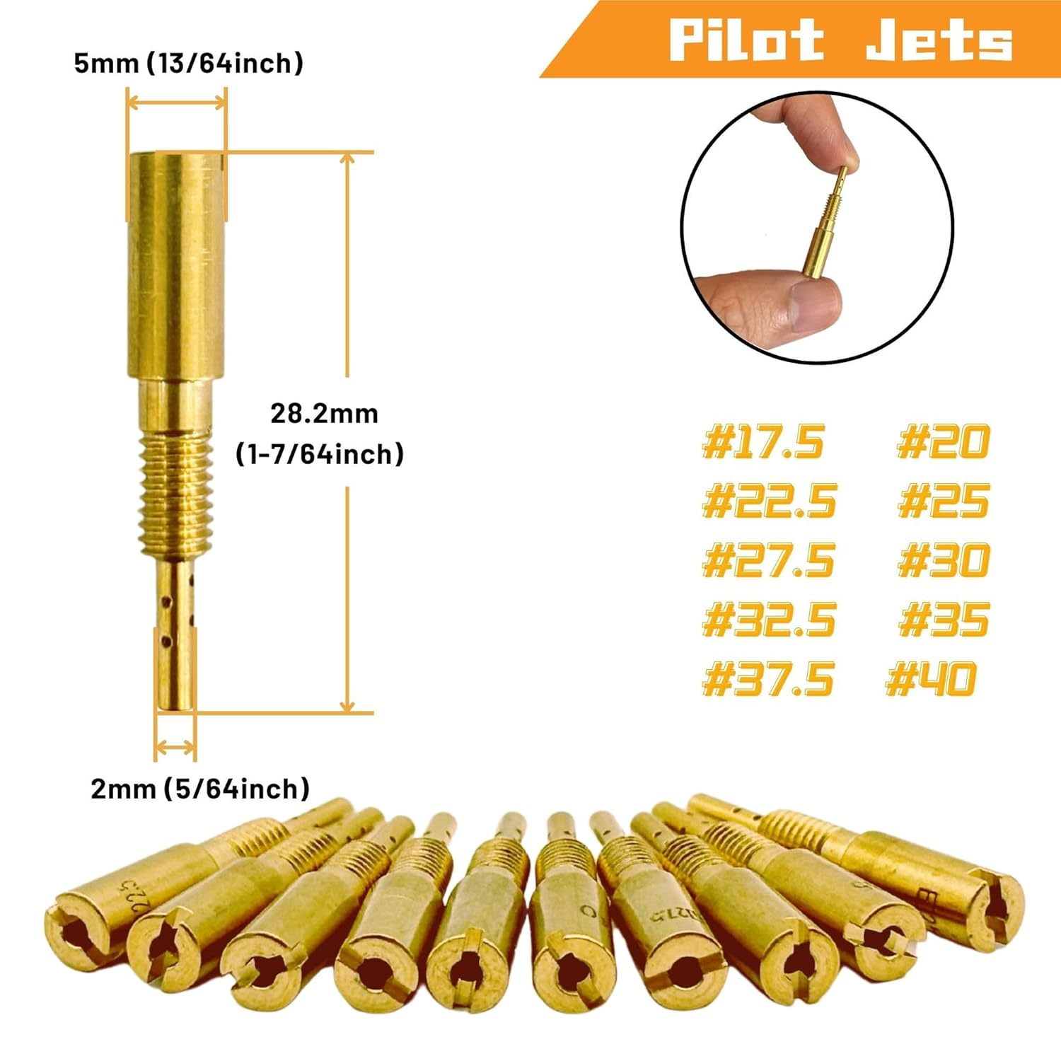 Os tamanhos de jatos piloto TM variam de 17.5 a 40, enquanto os jatos piloto VM vão de 25 a 60, permitindo uma personalização ainda maior para diferentes condições de pilotagem. Este kit é compatível com uma vasta gama de carburadores, incluindo o Mikuni HS40 Flat Slide com bomba de aceleração, HSR42, HSR45, HSR48, além de modelos como RS34, RS36, RS38 e RS40. Também se adapta a carburadores TM33-8012, TM36-68, TM40-6, e VM16-519, VM29 e VM33, abrangendo uma variedade de aplicações em 2 tempos e 4 tempos.
