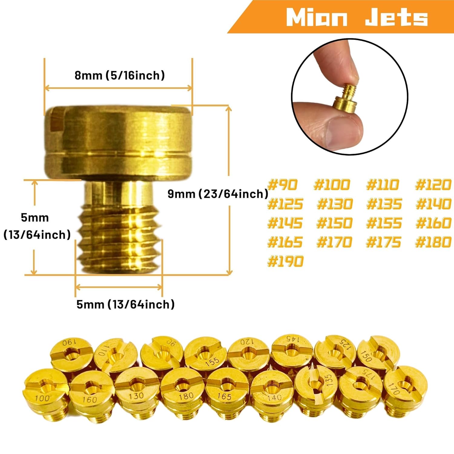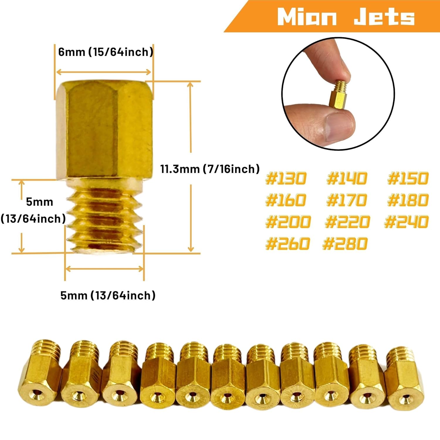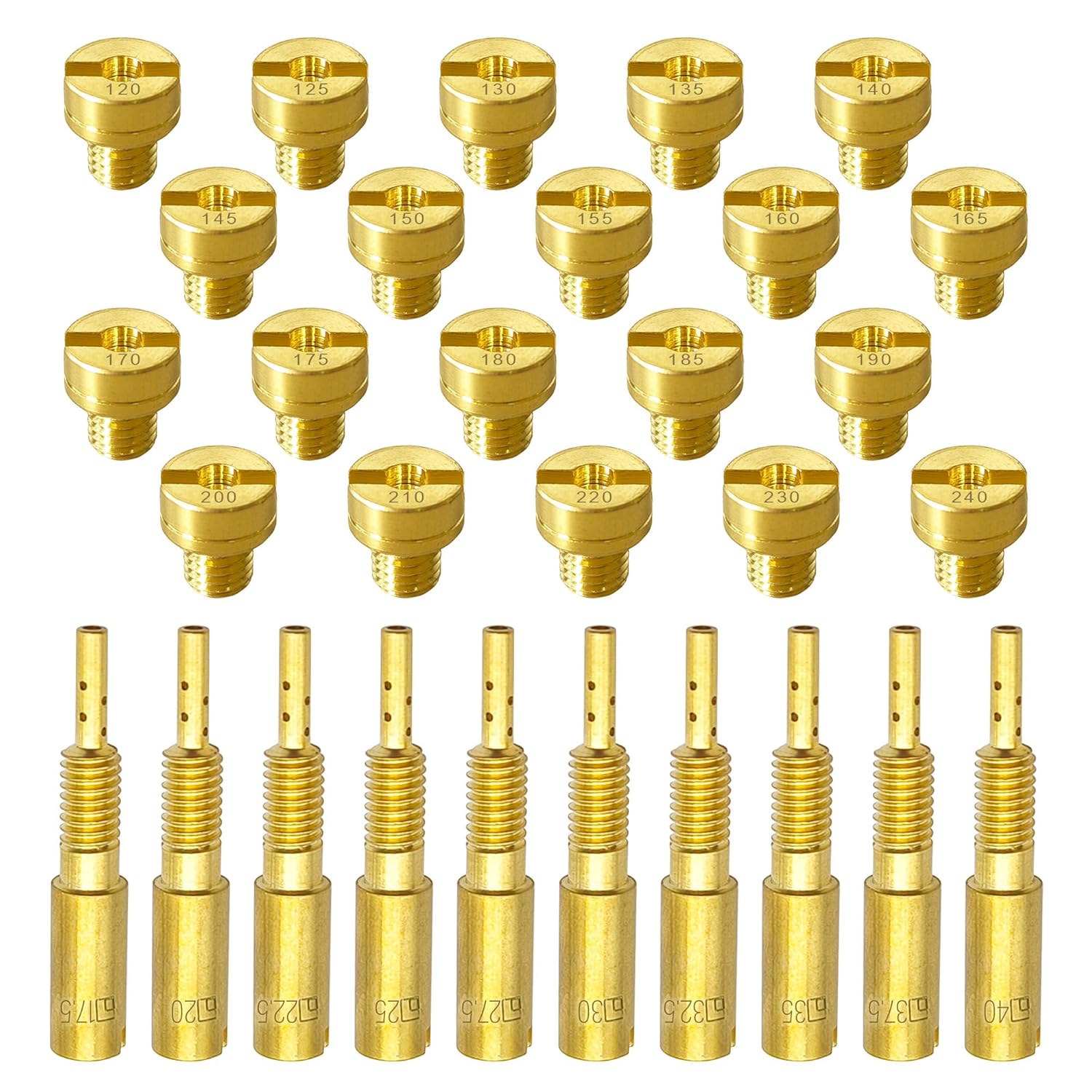 – Tamanhos de Jatos Principais: Inclui jatos redondos de 90 a 190 e hexagonais de 130 a 280, permitindo uma ampla gama de ajustes.